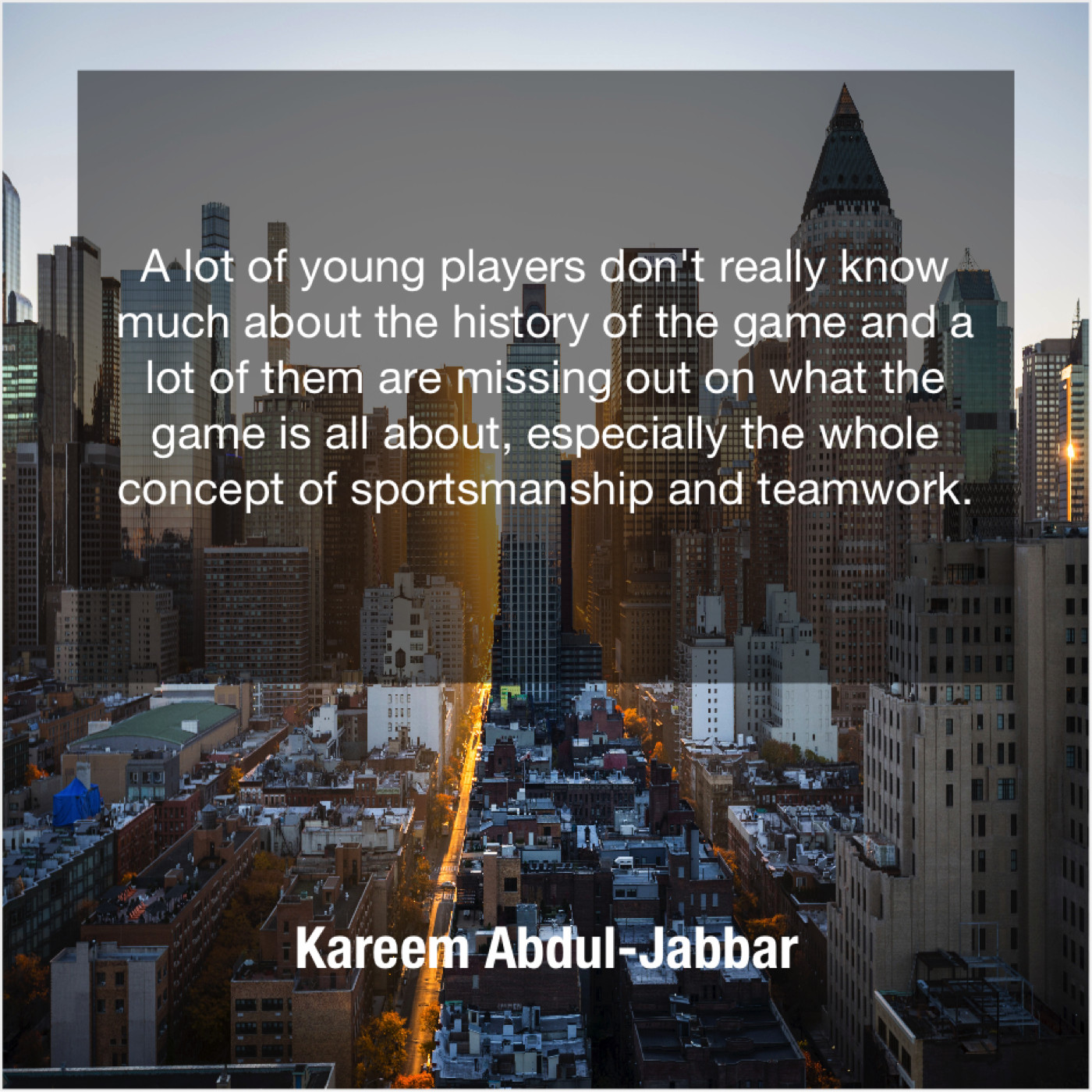 Kareem Abdul-Jabbar Kareem Abdul-Jabbar – A lot of young players… April 14, 2019 admin “A lot of young players don’t really know much about the history of the game and a lot of them are missing out on what the game is all about, especially the whole concept of sportsmanship and teamwork.”-Kareem Abdul-Jabbar