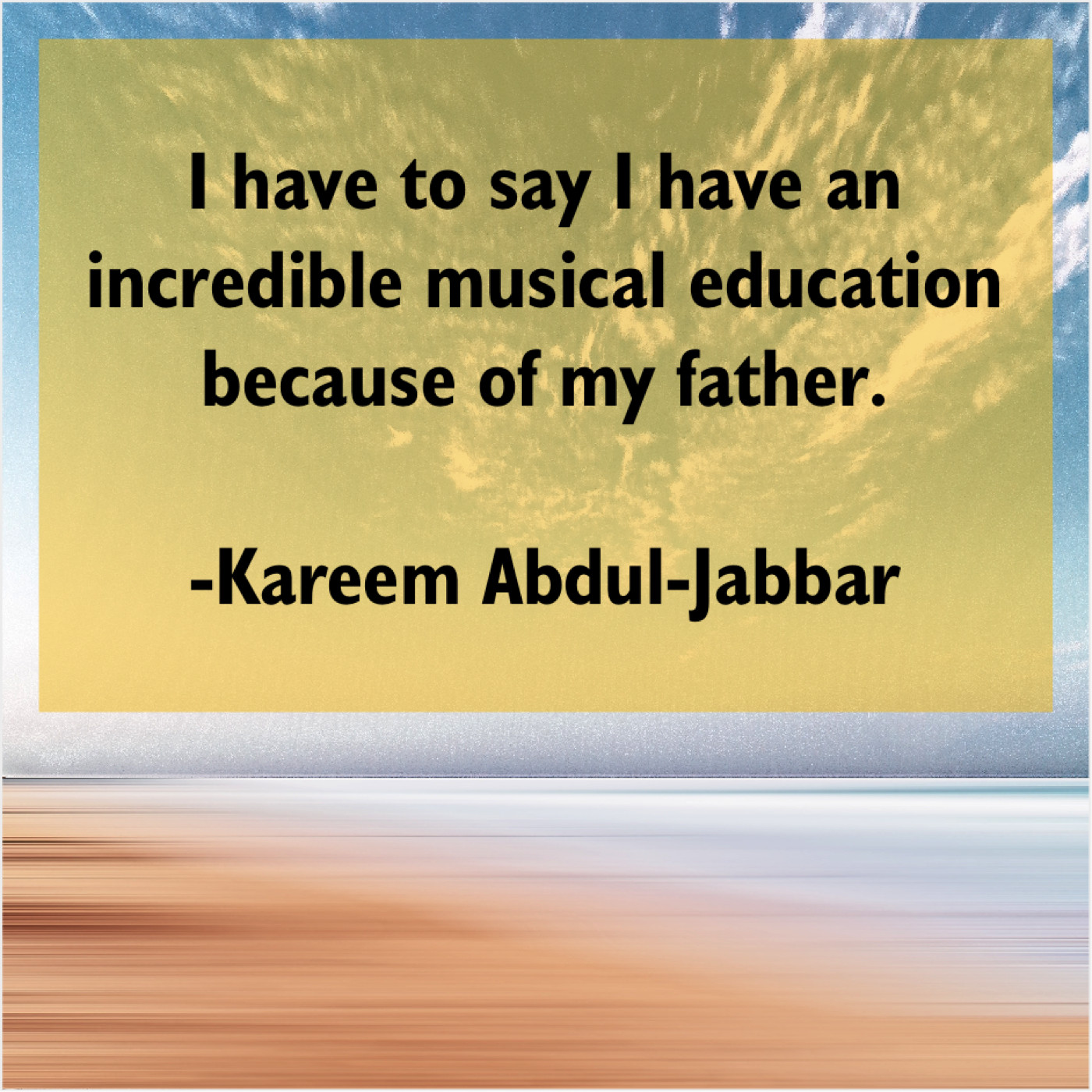 Kareem Abdul-Jabbar Kareem Abdul-Jabbar – I have to say I… March 24, 2019 admin “I have to say I have an incredible musical education because of my father.”-Kareem Abdul-Jabbar