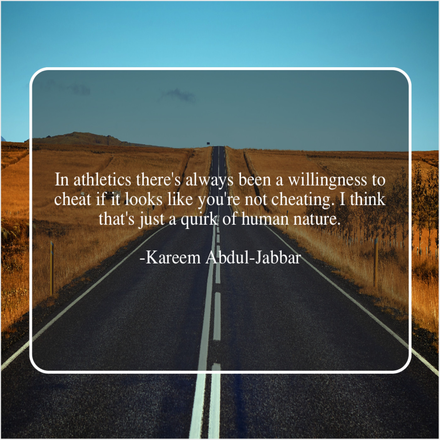 Kareem Abdul-Jabbar Kareem Abdul-Jabbar – In athletics there’s always been… April 1, 2019 admin “In athletics there’s always been a willingness to cheat if it looks like you’re not cheating. I think that’s just a quirk of human nature.”-Kareem Abdul-Jabbar