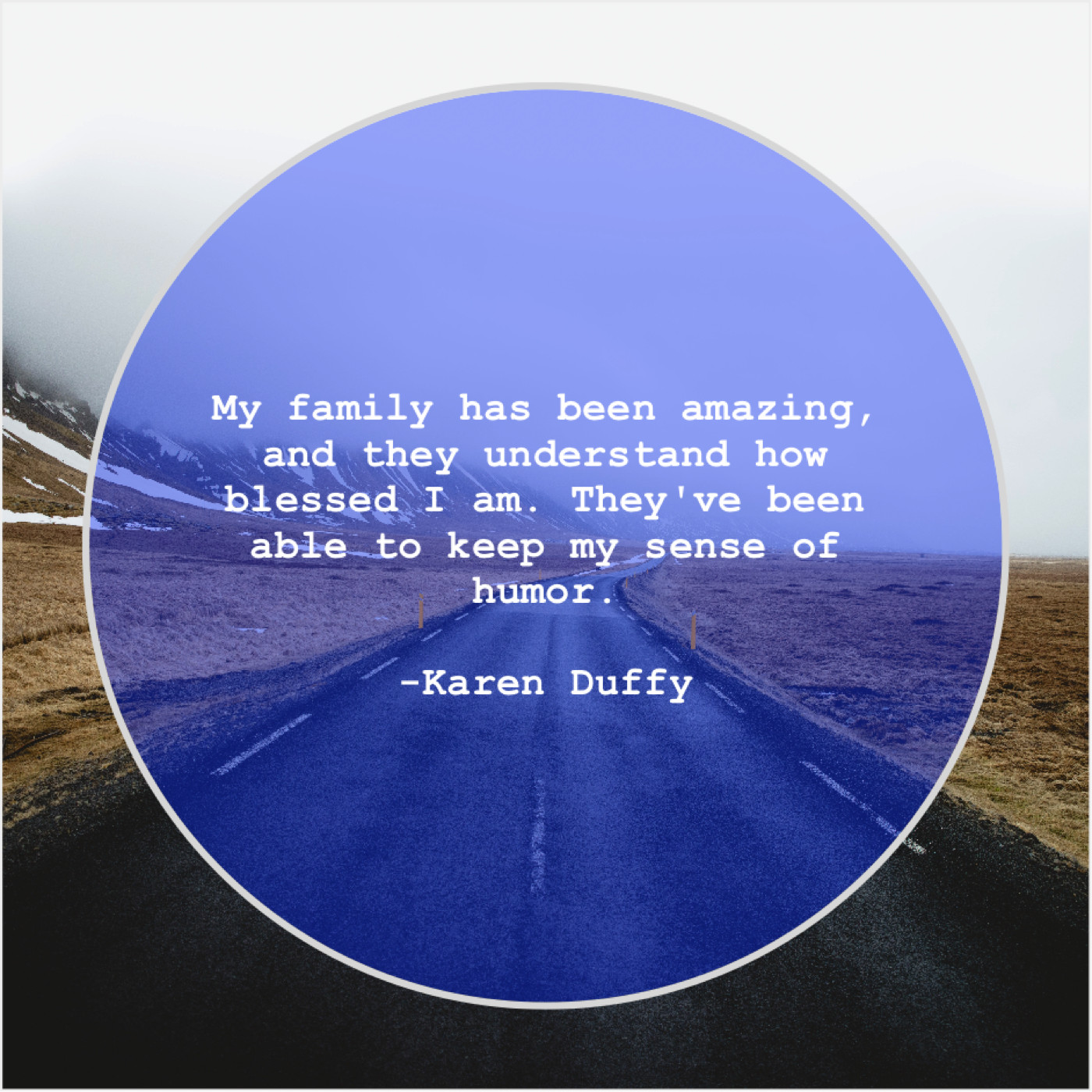 Karen Duffy Karen Duffy – My family has been amazing… March 26, 2019 admin “My family has been amazing, and they understand how blessed I am. They’ve been able to keep my sense of humor.”-Karen Duffy