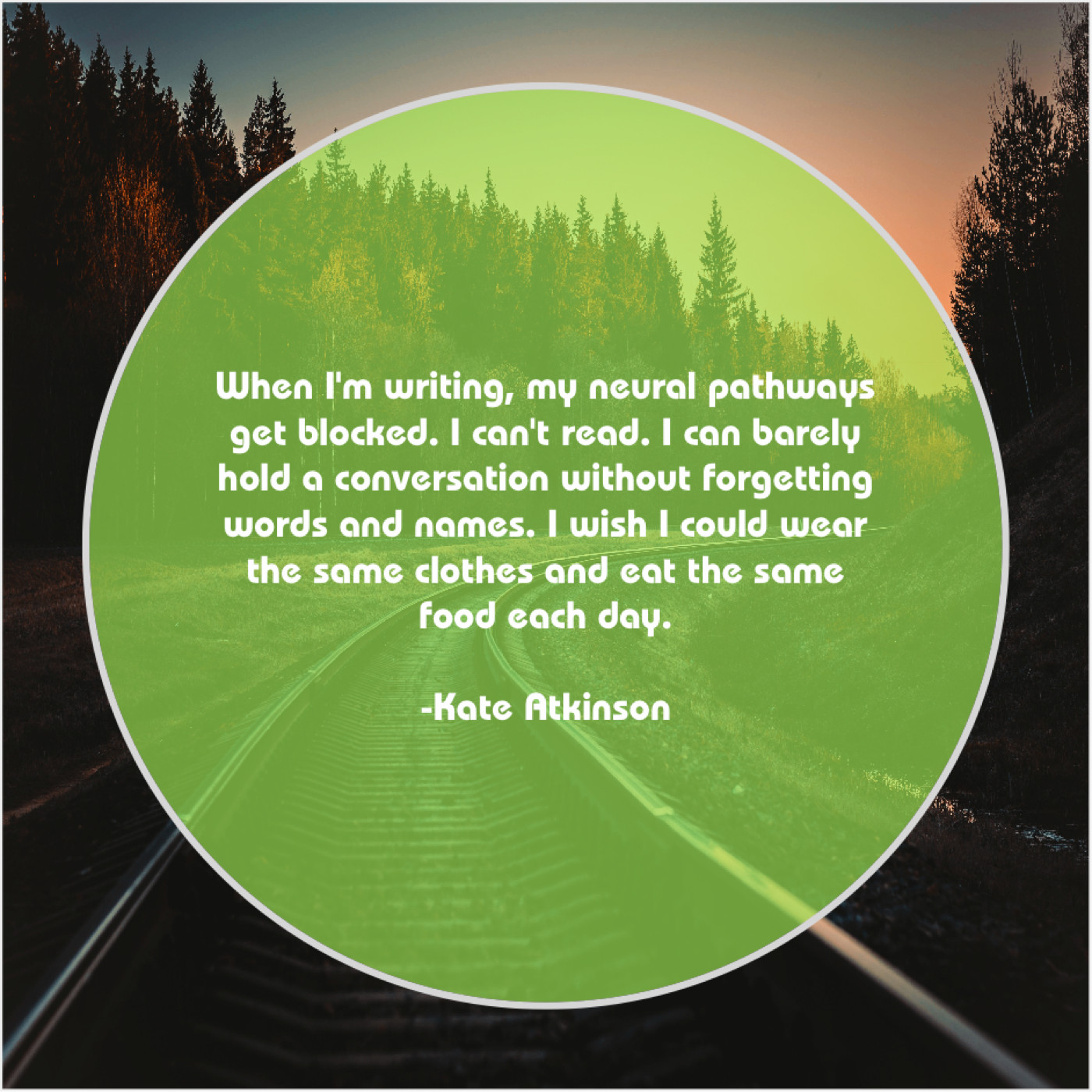 Kate Atkinson Kate Atkinson – When I’m writing, my neural… January 24, 2019 admin “When I’m writing, my neural pathways get blocked. I can’t read. I can barely hold a conversation without forgetting words and names. I wish I could wear the same clothes and eat the same food each day.”-Kate Atkinson