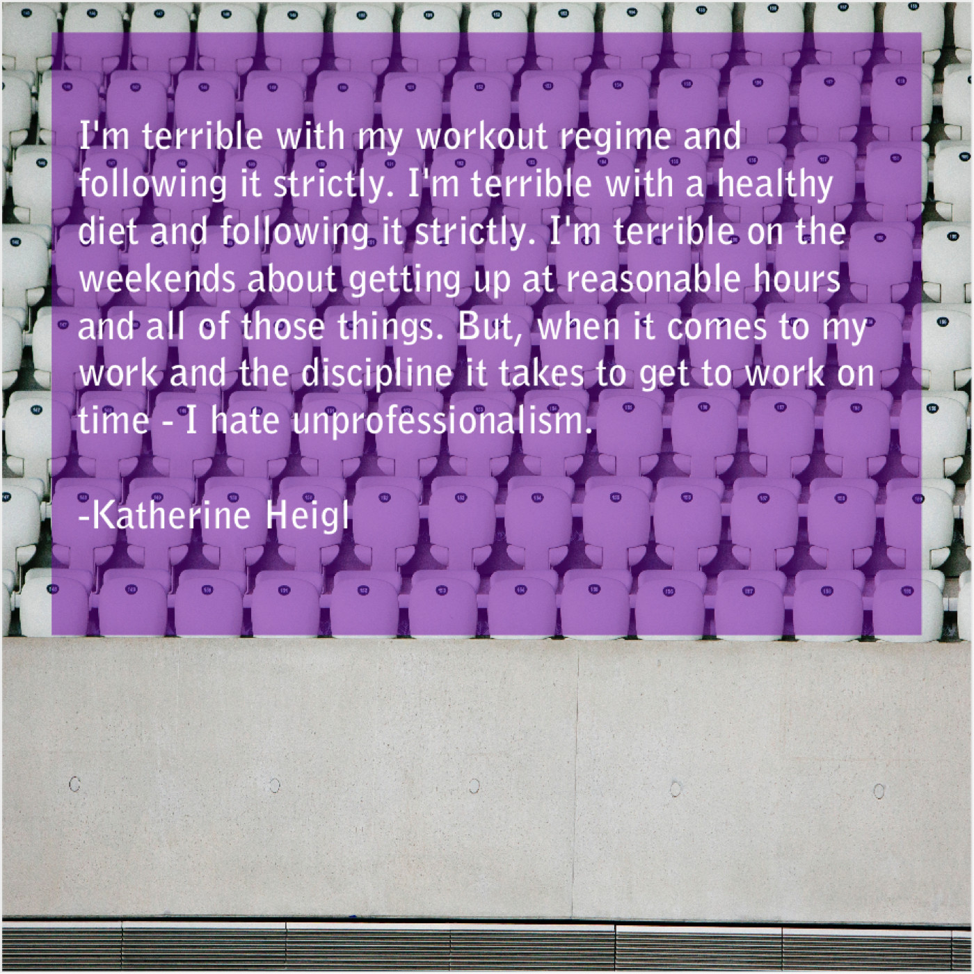 “I’m terrible with my workout regime and following it strictly. I’m terrible with a healthy diet and following it strictly. I’m terrible on the weekends about getting up at reasonable hours and all of those things. But, when it comes to my work and the discipline it takes to get to work on time – I hate unprofessionalism.”