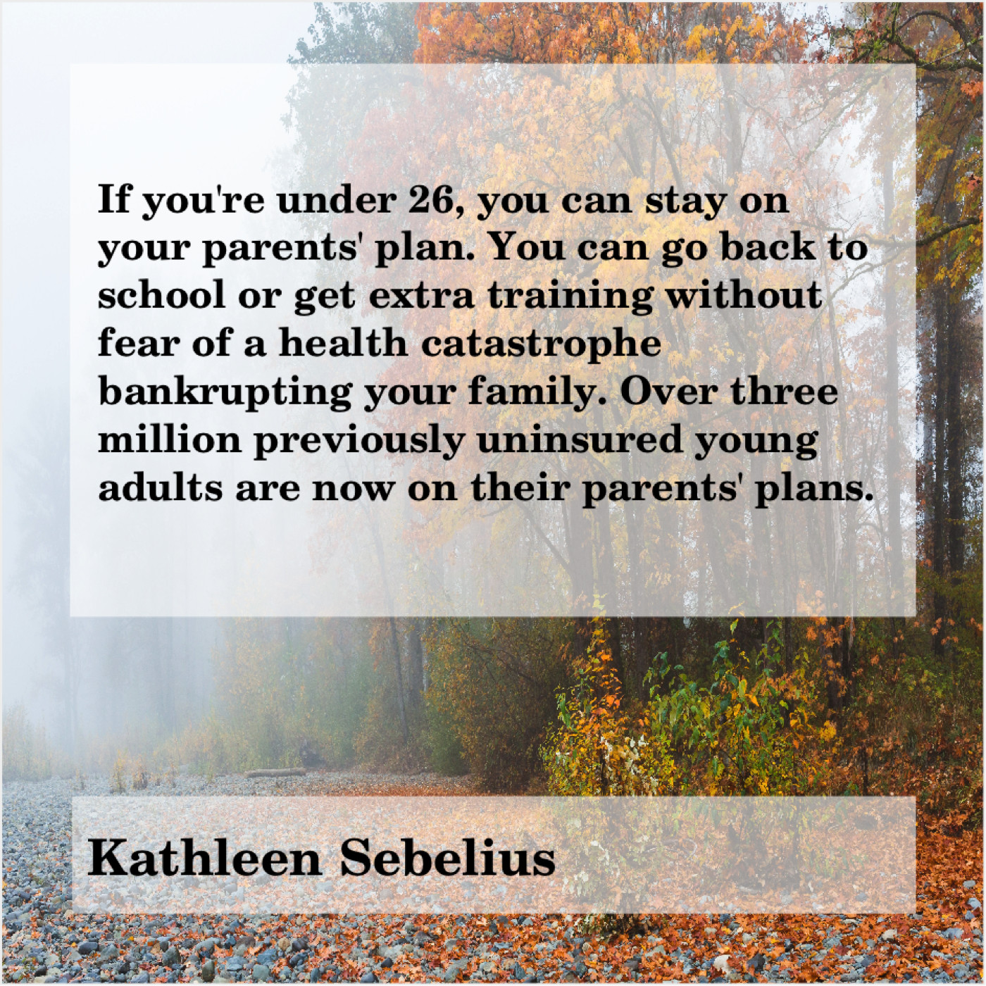 “If you’re under 26, you can stay on your parents’ plan. You can go back to school or get extra training without fear of a health catastrophe bankrupting your family. Over three million previously uninsured young adults are now on their parents’ plans.”