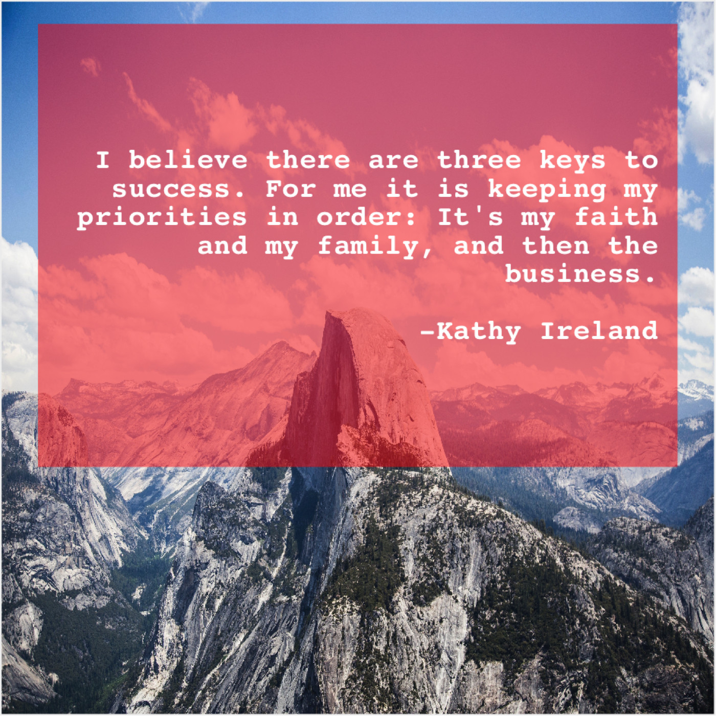 Kathy Ireland Kathy Ireland – I believe there are three… May 10, 2019 admin “I believe there are three keys to success. For me it is keeping my priorities in order: It’s my faith and my family, and then the business.”-Kathy Ireland