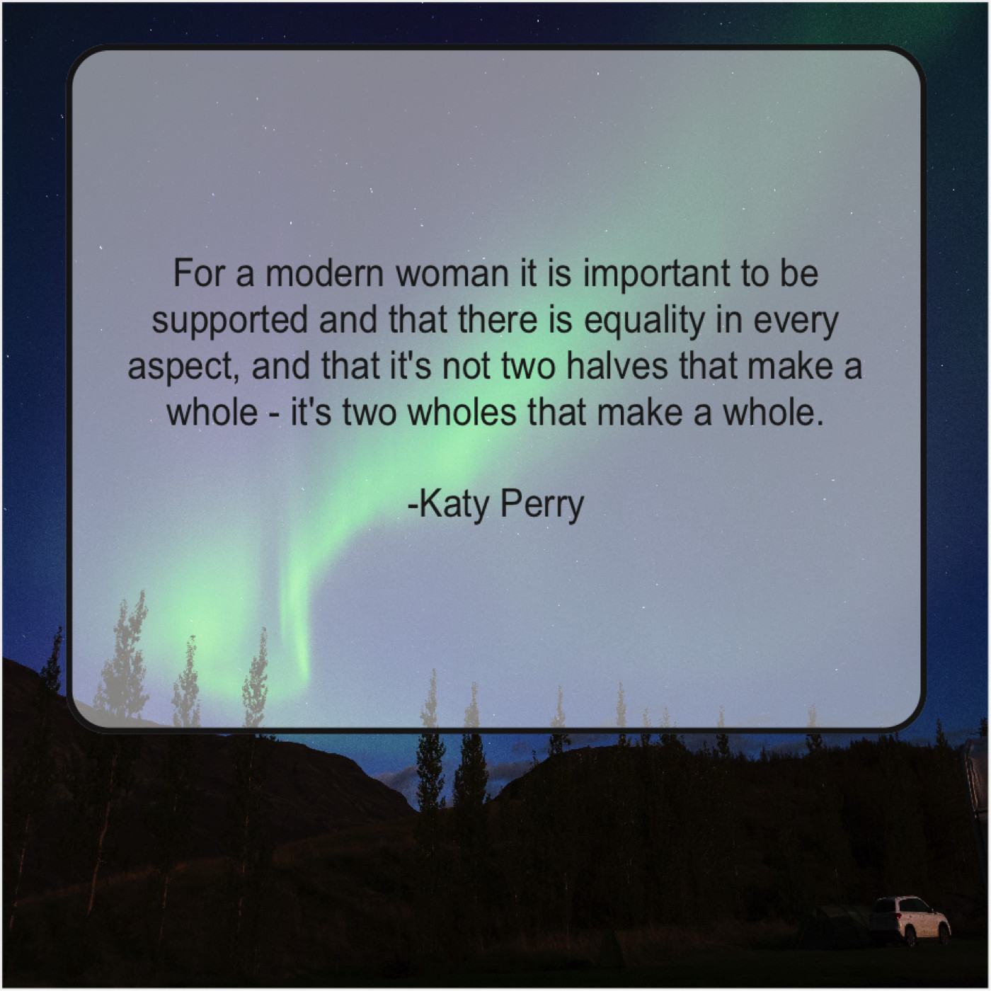 Katy Perry Katy Perry – For a modern woman it… June 16, 2019 admin “For a modern woman it is important to be supported and that there is equality in every aspect, and that it’s not two halves that make a whole – it’s two wholes that make a whole.”-Katy Perry