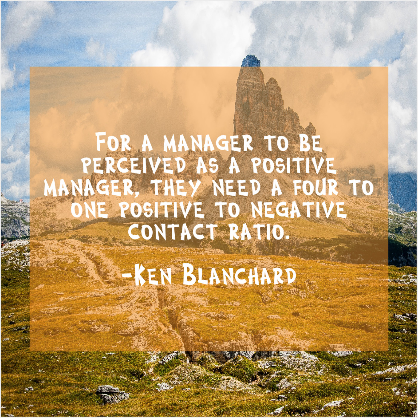 Ken Blanchard Ken Blanchard – For a manager to be… February 6, 2019 admin “For a manager to be perceived as a positive manager, they need a four to one positive to negative contact ratio.”-Ken Blanchard