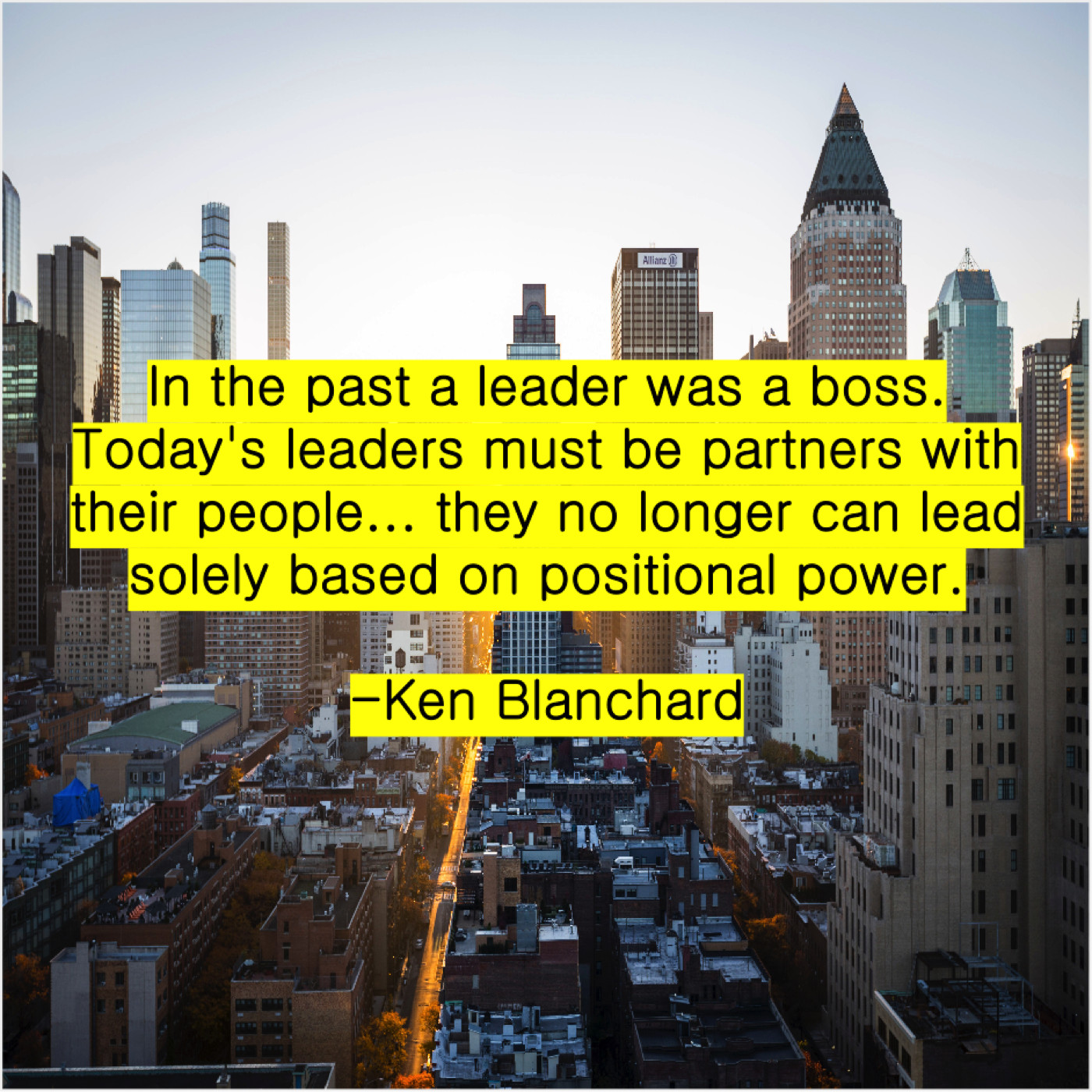 Ken Blanchard Ken Blanchard – In the past a leader… January 24, 2019 admin “In the past a leader was a boss. Today’s leaders must be partners with their people… they no longer can lead solely based on positional power.”-Ken Blanchard