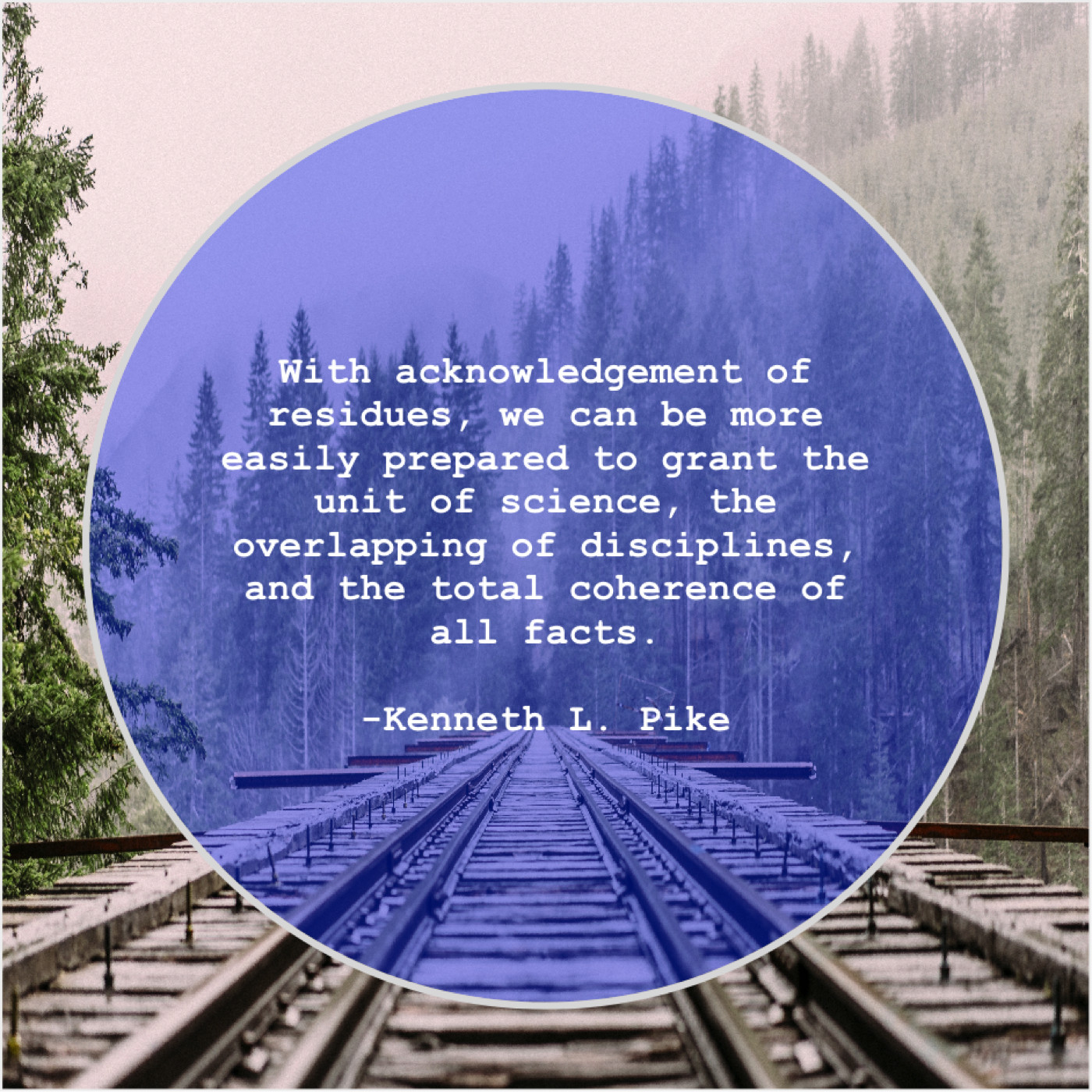 “With acknowledgement of residues, we can be more easily prepared to grant the unit of science, the overlapping of disciplines, and the total coherence of all facts.”