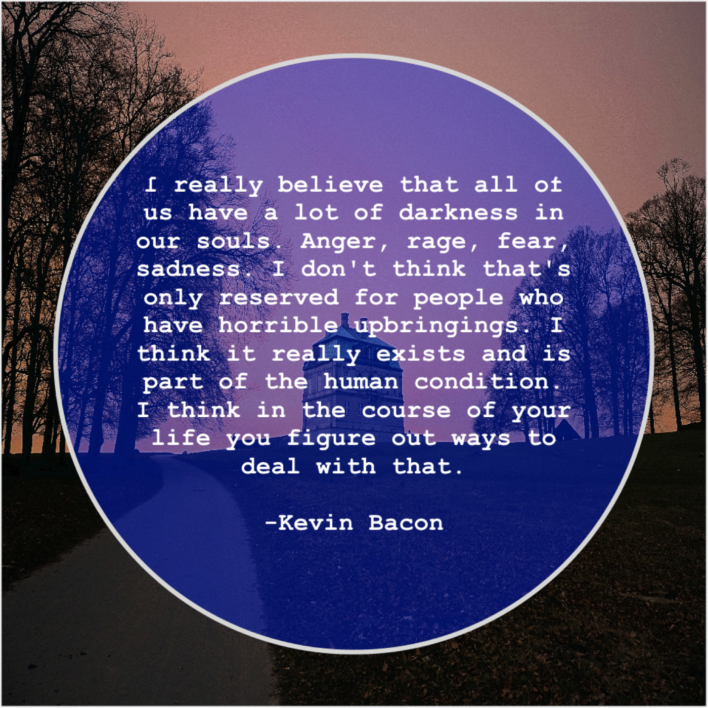 “I really believe that all of us have a lot of darkness in our souls. Anger, rage, fear, sadness. I don’t think that’s only reserved for people who have horrible upbringings. I think it really exists and is part of the human condition. I think in the course of your life you figure out ways to deal with that.”