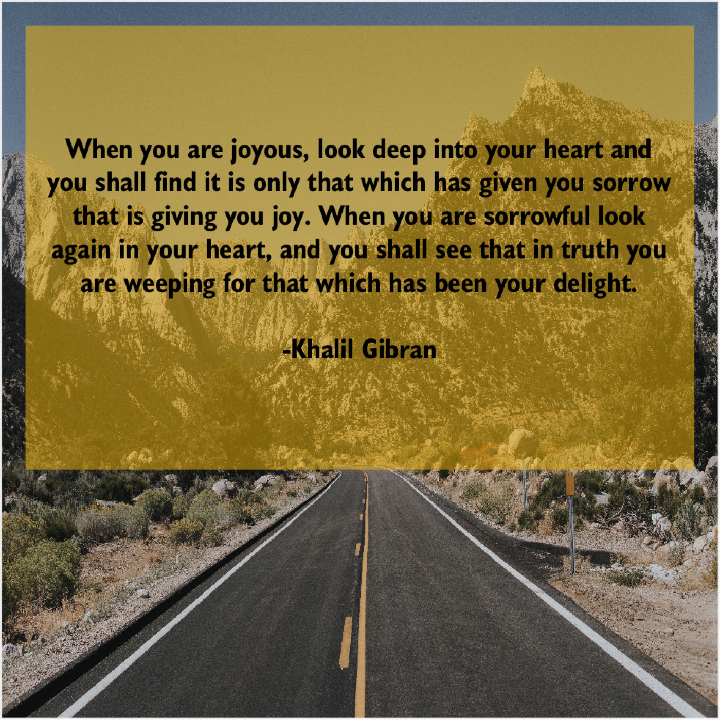 “When you are joyous, look deep into your heart and you shall find it is only that which has given you sorrow that is giving you joy. When you are sorrowful look again in your heart, and you shall see that in truth you are weeping for that which has been your delight.”