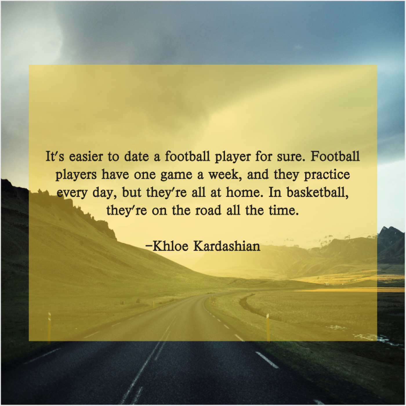 Khloe Kardashian Khloe Kardashian – It’s easier to date a… May 29, 2019 admin “It’s easier to date a football player for sure. Football players have one game a week, and they practice every day, but they’re all at home. In basketball, they’re on the road all the time.”-Khloe Kardashian