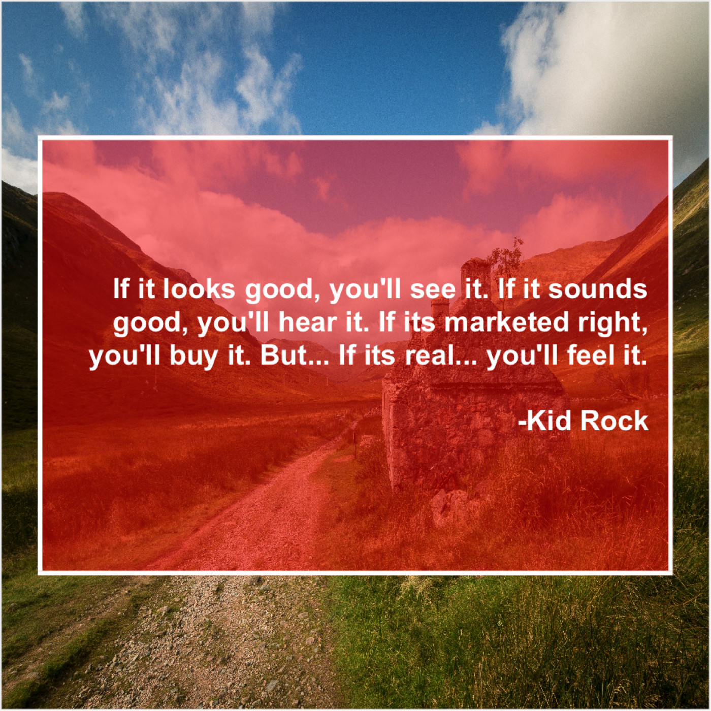 Kid Rock Kid Rock – If it looks good, you’ll… March 20, 2019 admin “If it looks good, you’ll see it. If it sounds good, you’ll hear it. If its marketed right, you’ll buy it. But… If its real… you’ll feel it.”-Kid Rock