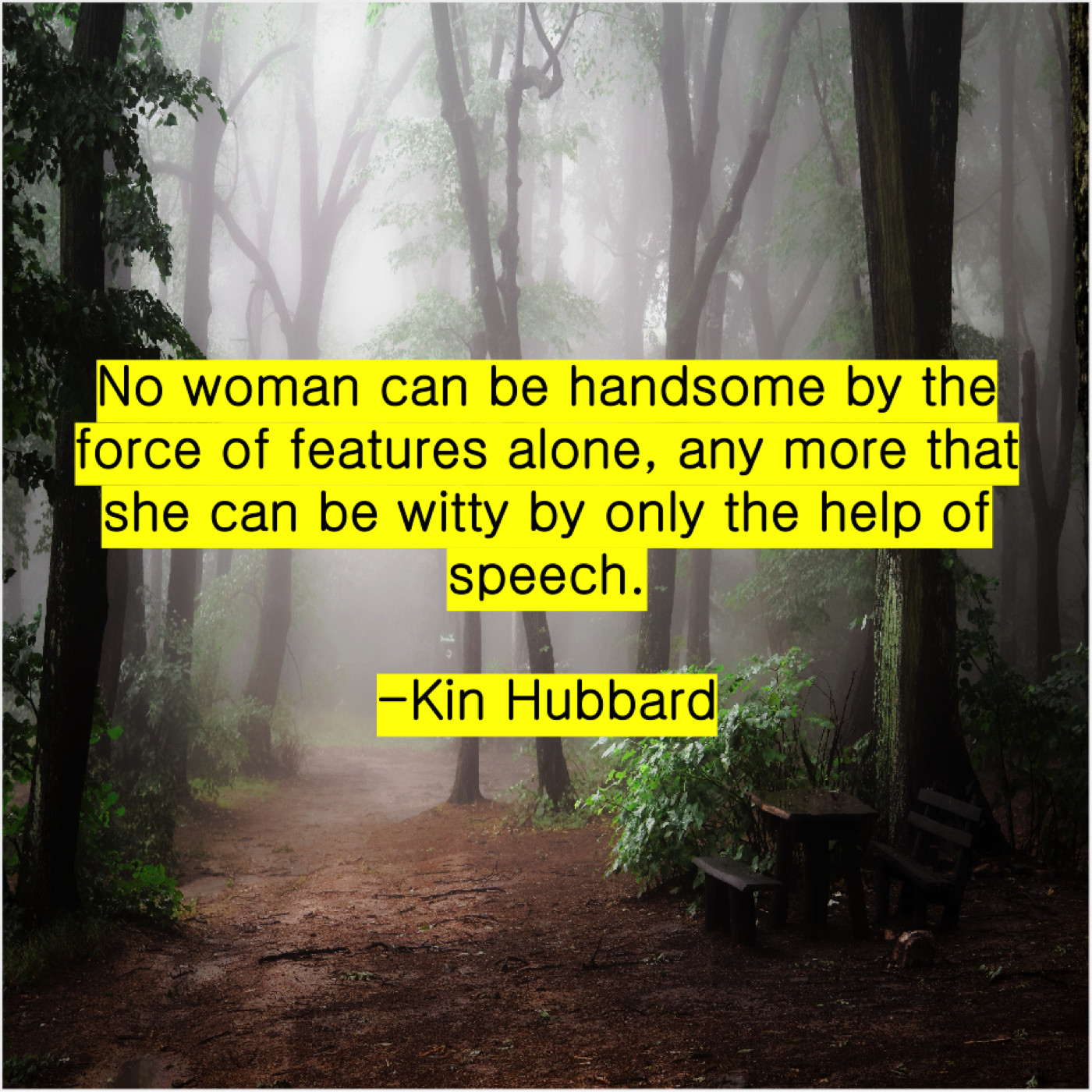 Kin Hubbard Kin Hubbard – No woman can be handsome… December 29, 2018 admin “No woman can be handsome by the force of features alone, any more that she can be witty by only the help of speech.”-Kin Hubbard