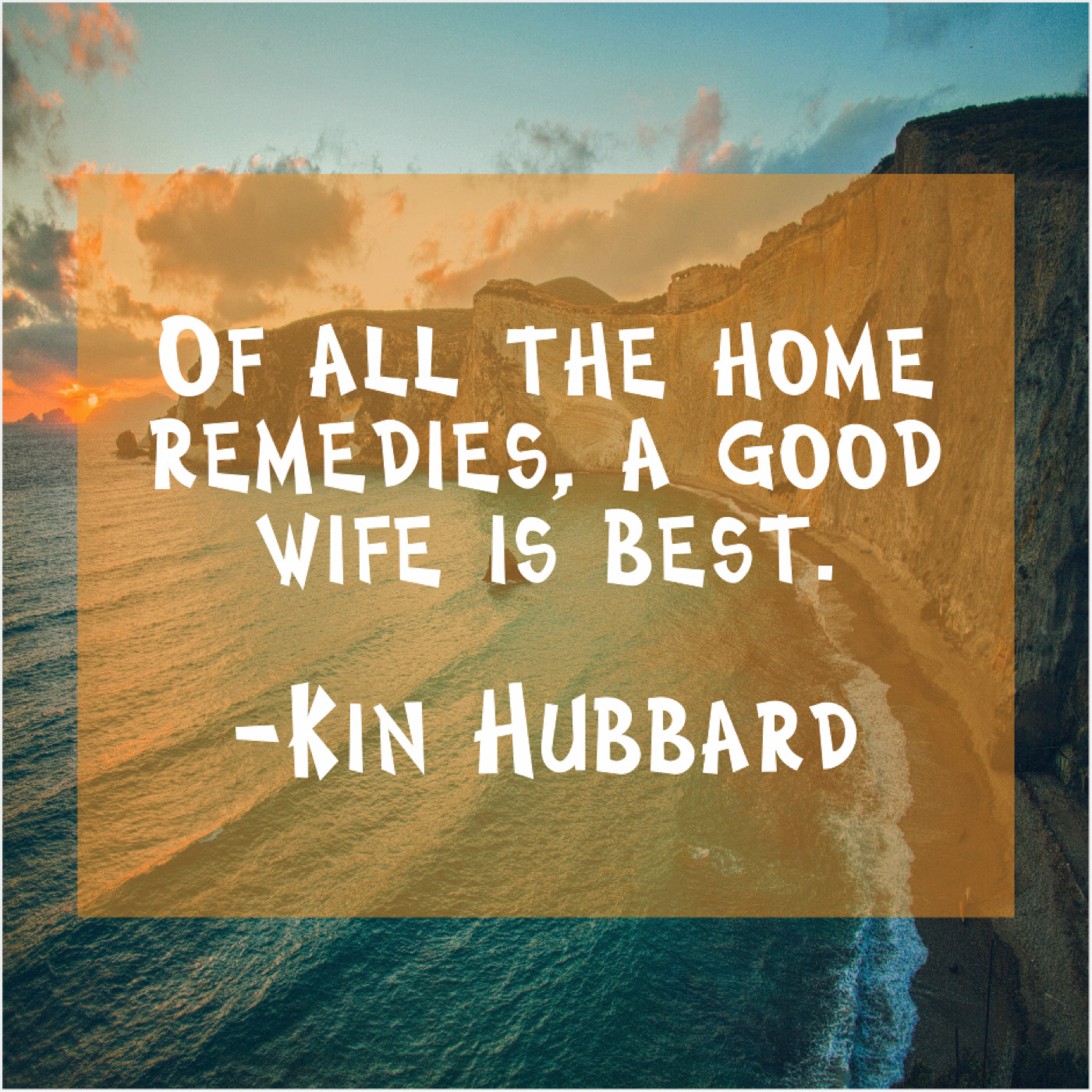 Kin Hubbard Kin Hubbard – Of all the home remedies… April 21, 2019 admin “Of all the home remedies, a good wife is best.”-Kin Hubbard