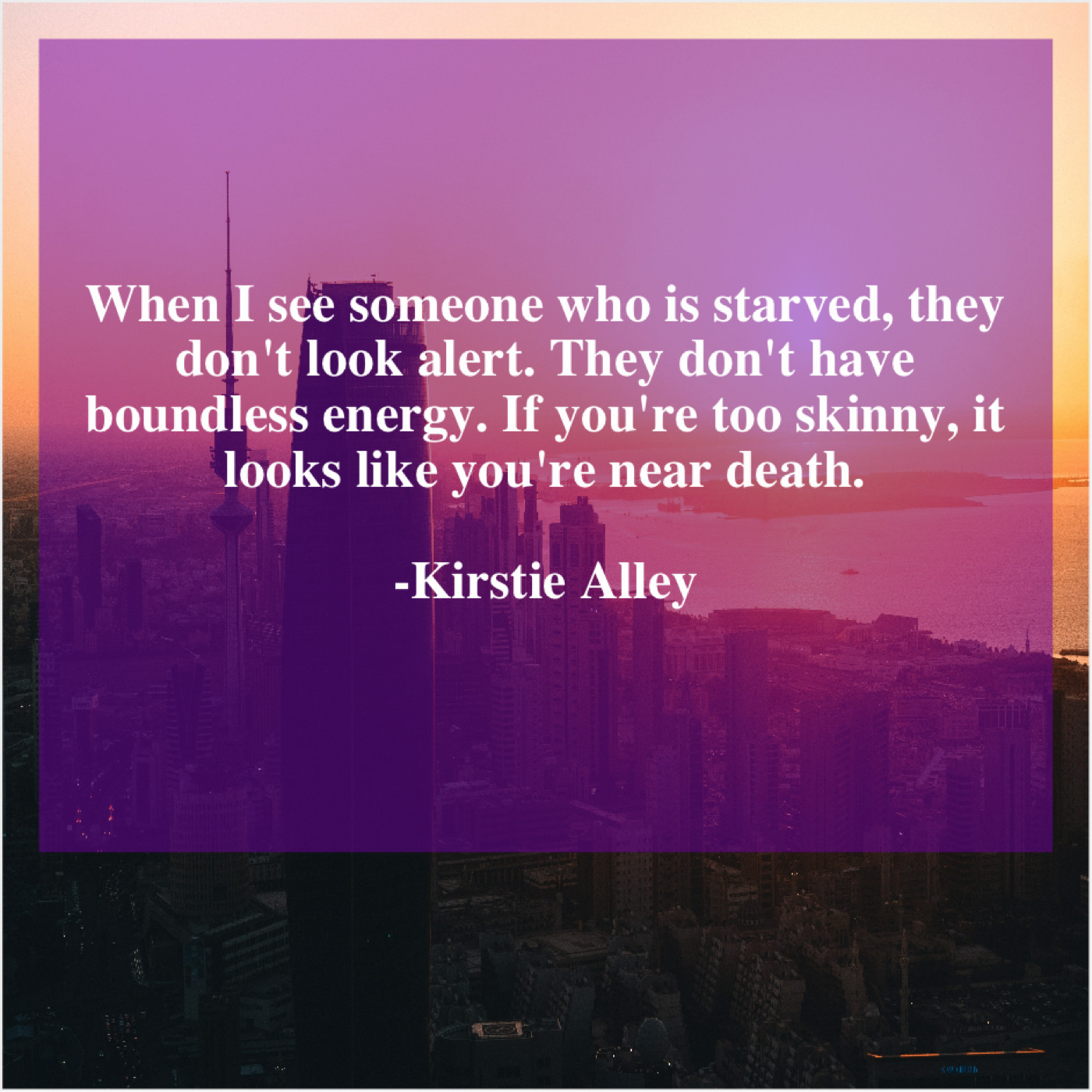 Kirstie Alley Kirstie Alley – When I see someone who… June 4, 2019 admin “When I see someone who is starved, they don’t look alert. They don’t have boundless energy. If you’re too skinny, it looks like you’re near death.”-Kirstie Alley