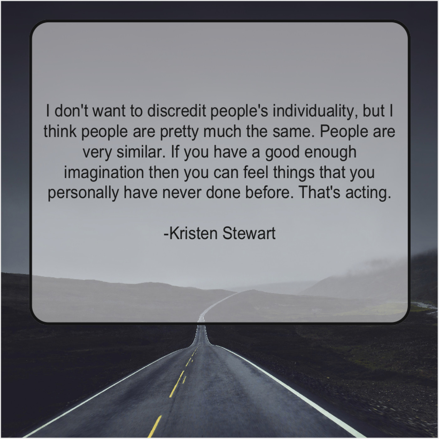 “I don’t want to discredit people’s individuality, but I think people are pretty much the same. People are very similar. If you have a good enough imagination then you can feel things that you personally have never done before. That’s acting.”