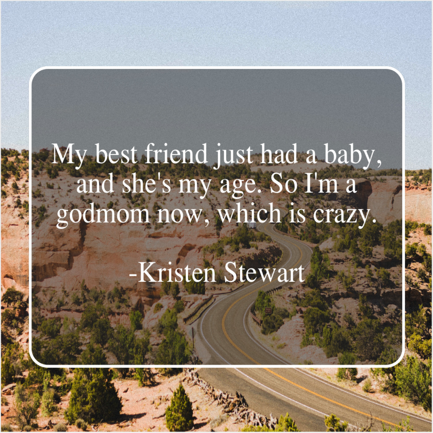 Kristen Stewart Kristen Stewart – My best friend just had… July 20, 2019 admin “My best friend just had a baby, and she’s my age. So I’m a godmom now, which is crazy.”-Kristen Stewart