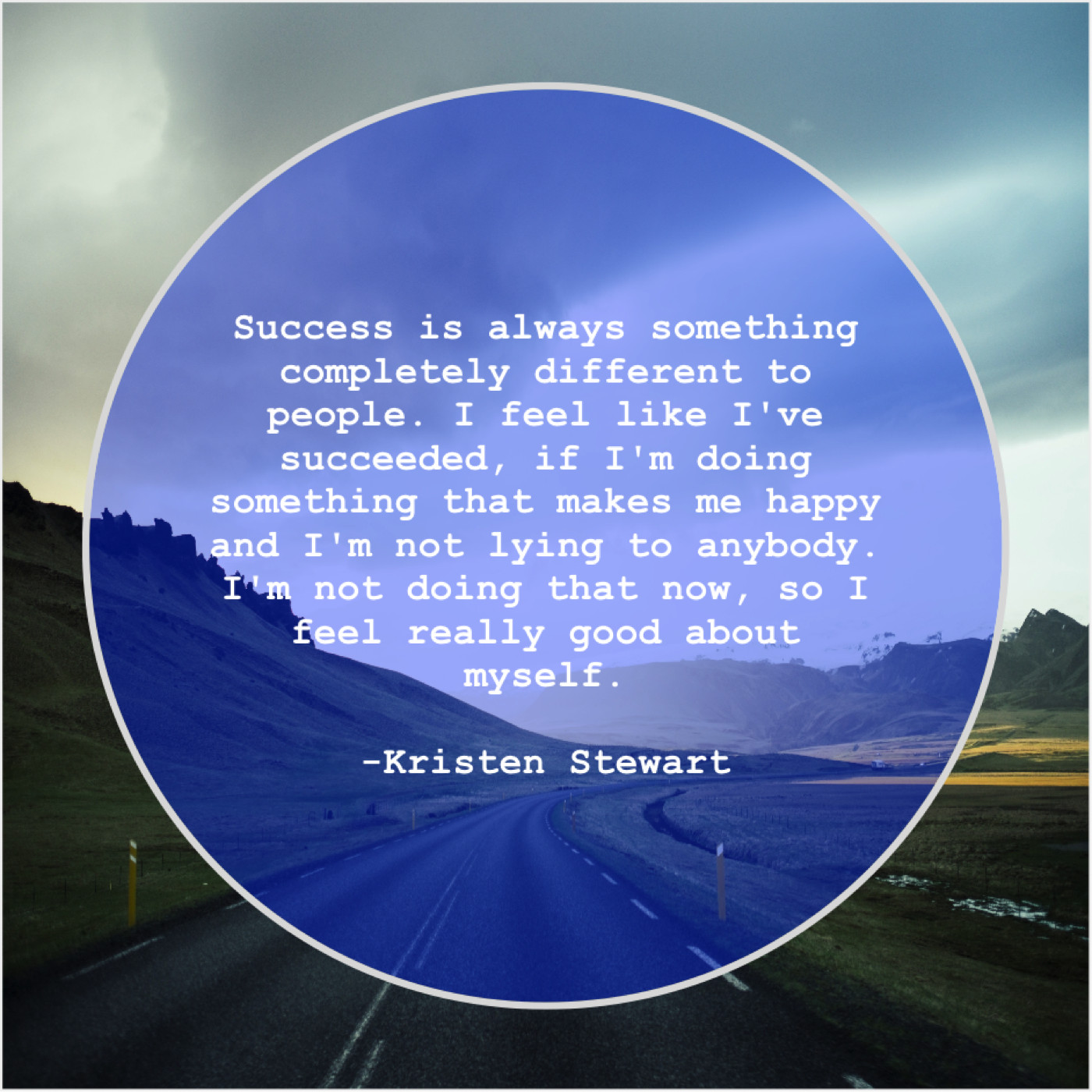 Kristen Stewart Kristen Stewart – Success is always something completely… August 28, 2019 admin “Success is always something completely different to people. I feel like I’ve succeeded, if I’m doing something that makes me happy and I’m not lying to anybody. I’m not doing that now, so I feel really good about myself.”-Kristen Stewart