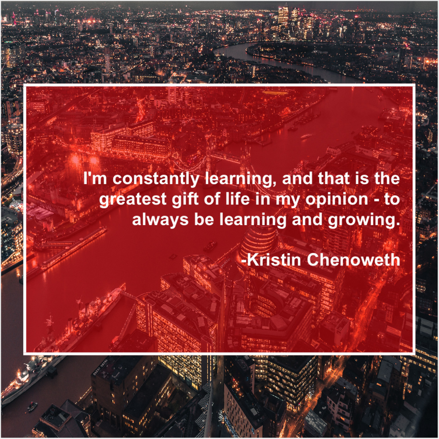 Kristin Chenoweth Kristin Chenoweth – I’m constantly learning, and that… April 21, 2019 admin “I’m constantly learning, and that is the greatest gift of life in my opinion – to always be learning and growing.”-Kristin Chenoweth