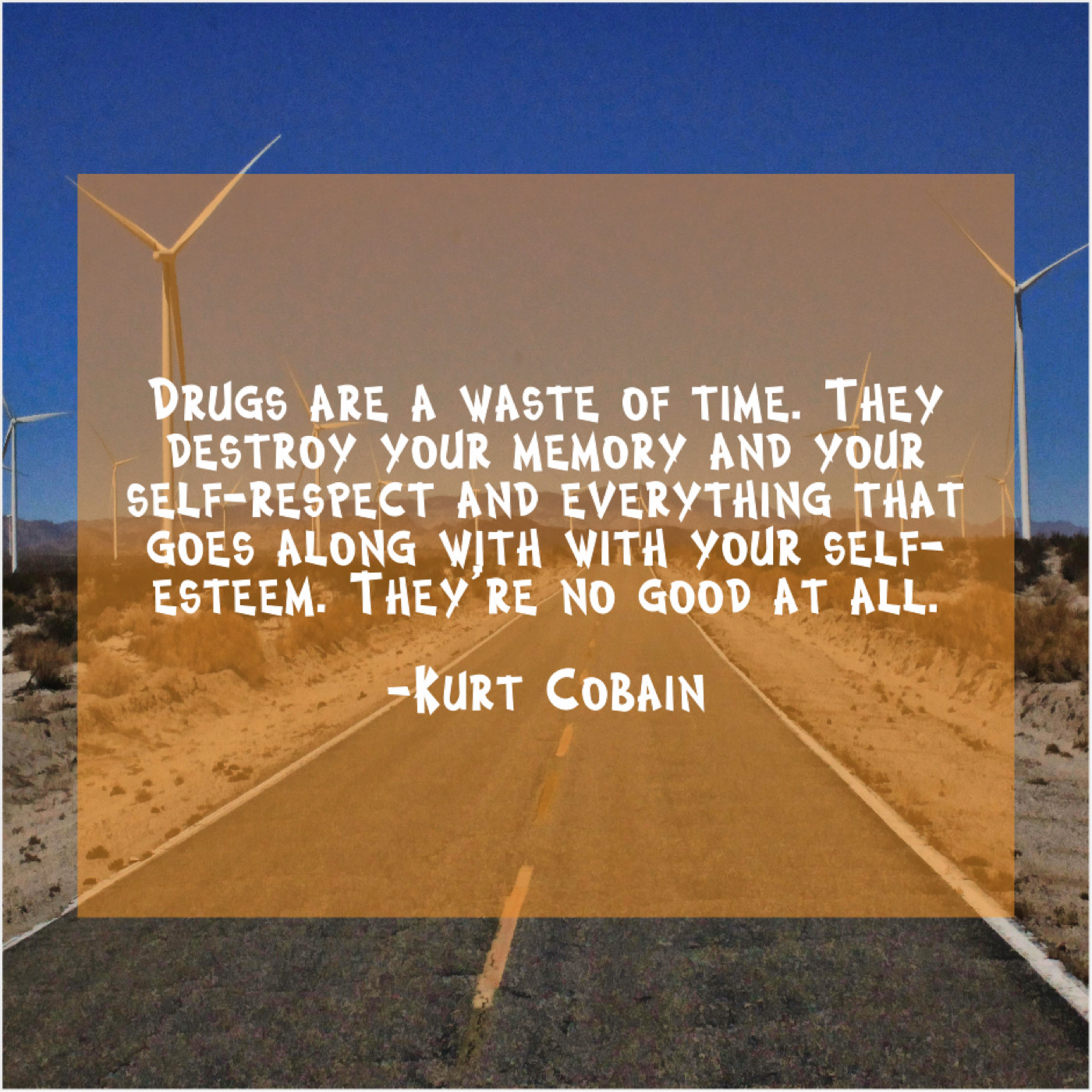 Kurt Cobain Kurt Cobain – Drugs are a waste of… March 23, 2019 admin “Drugs are a waste of time. They destroy your memory and your self-respect and everything that goes along with with your self-esteem. They’re no good at all.”-Kurt Cobain