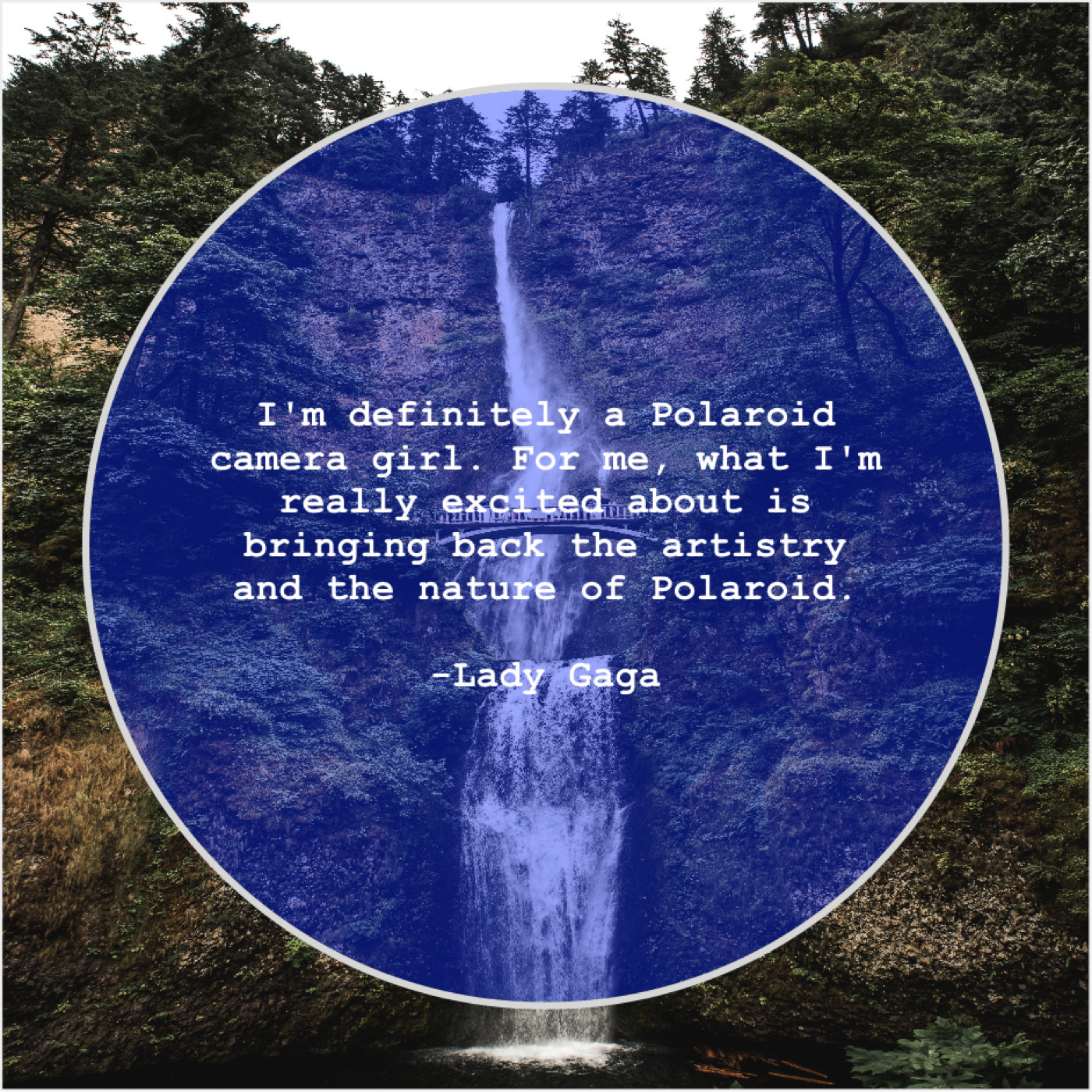 Lady Gaga Lady Gaga – I’m definitely a Polaroid camera… January 14, 2019 admin “I’m definitely a Polaroid camera girl. For me, what I’m really excited about is bringing back the artistry and the nature of Polaroid.”-Lady Gaga