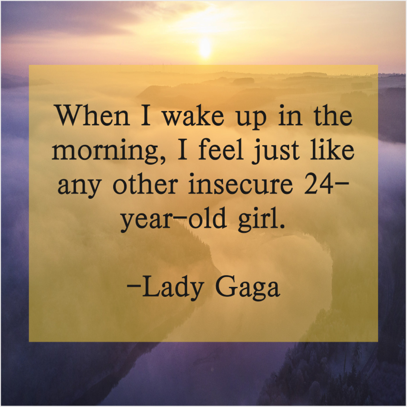 Lady Gaga Lady Gaga – When I wake up in… March 2, 2019 admin “When I wake up in the morning, I feel just like any other insecure 24-year-old girl.”-Lady Gaga