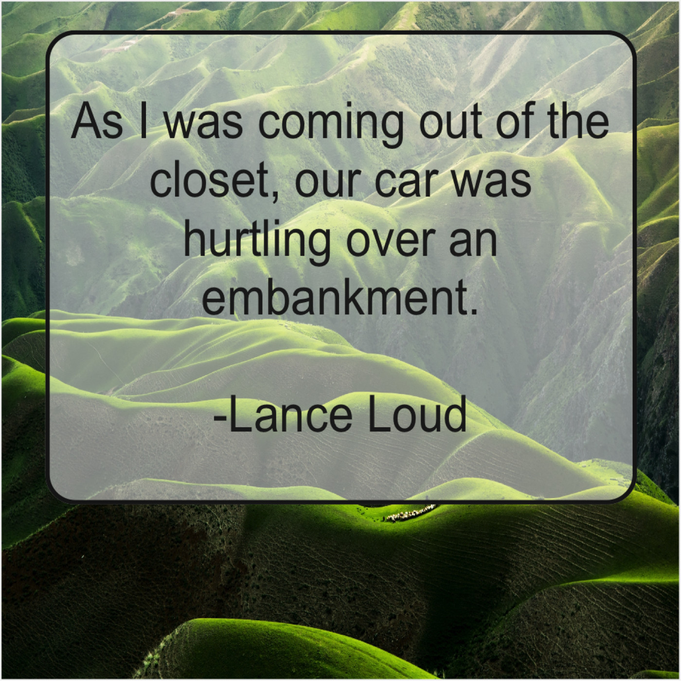 Lance Loud Lance Loud – As I was coming out… October 12, 2019 admin “As I was coming out of the closet, our car was hurtling over an embankment.”-Lance Loud