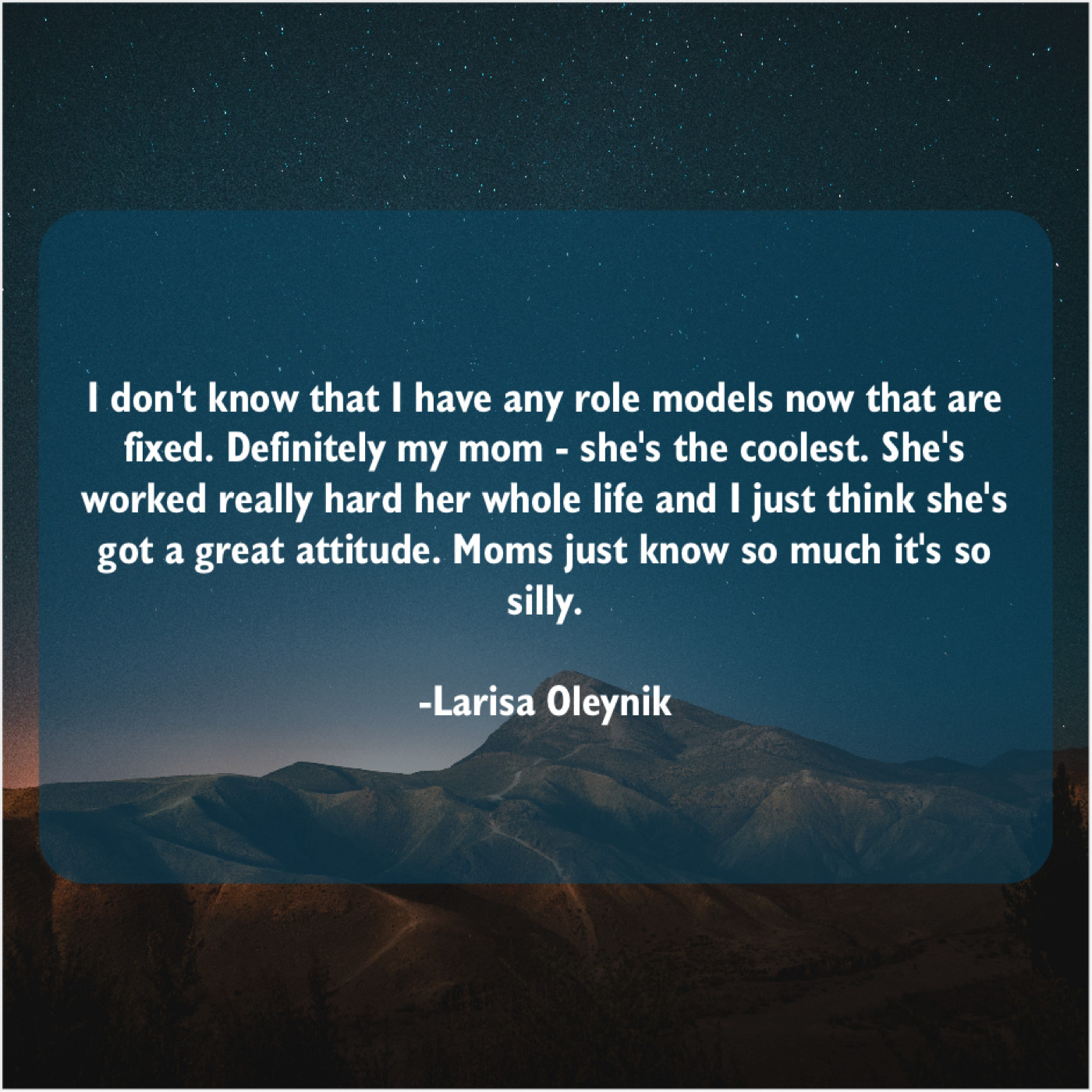 Larisa Oleynik Larisa Oleynik – I don’t know that I… July 24, 2019 admin “I don’t know that I have any role models now that are fixed. Definitely my mom – she’s the coolest. She’s worked really hard her whole life and I just think she’s got a great attitude. Moms just know so much it’s so silly.”-Larisa Oleynik