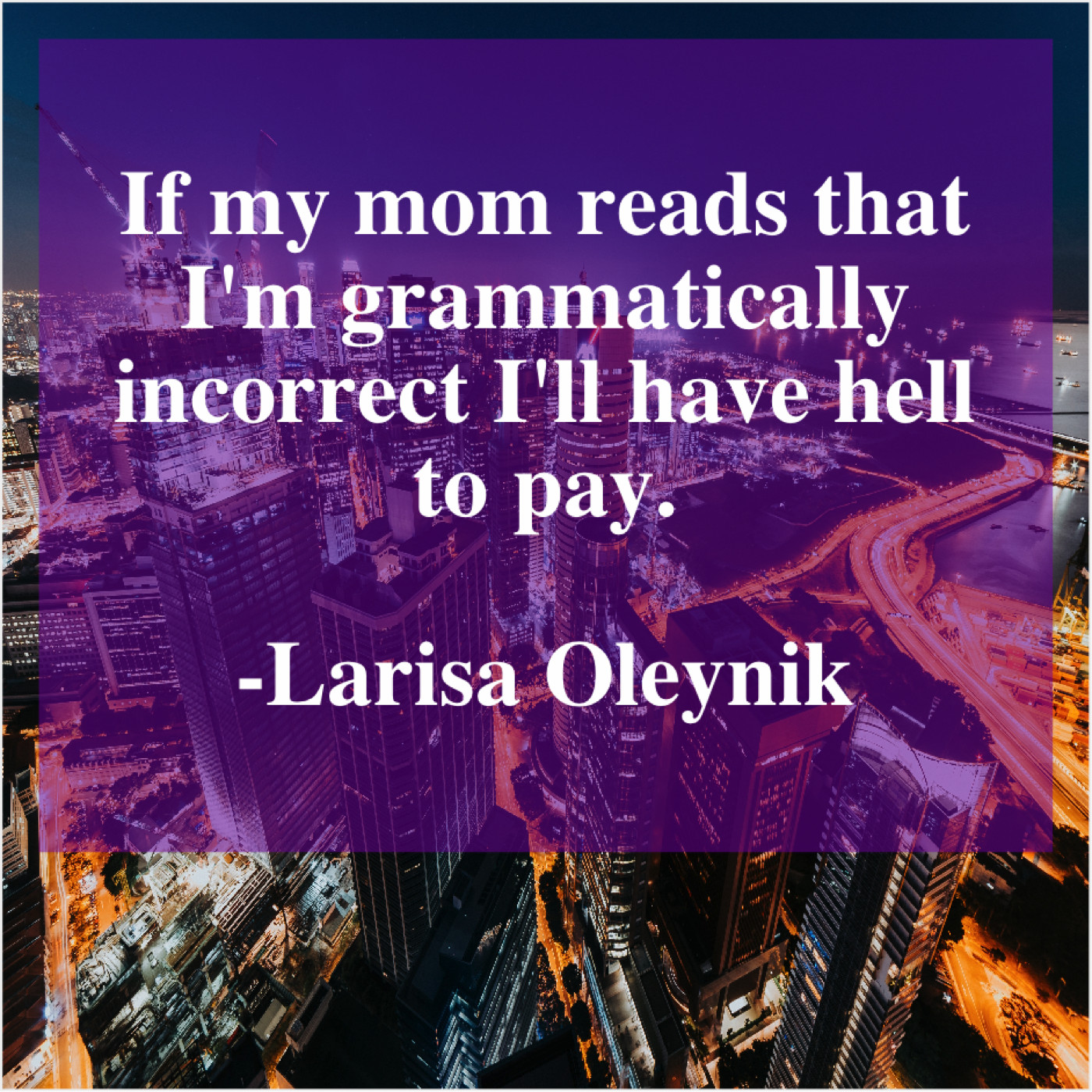 Larisa Oleynik Larisa Oleynik – If my mom reads that… March 21, 2019 admin “If my mom reads that I’m grammatically incorrect I’ll have hell to pay.”-Larisa Oleynik