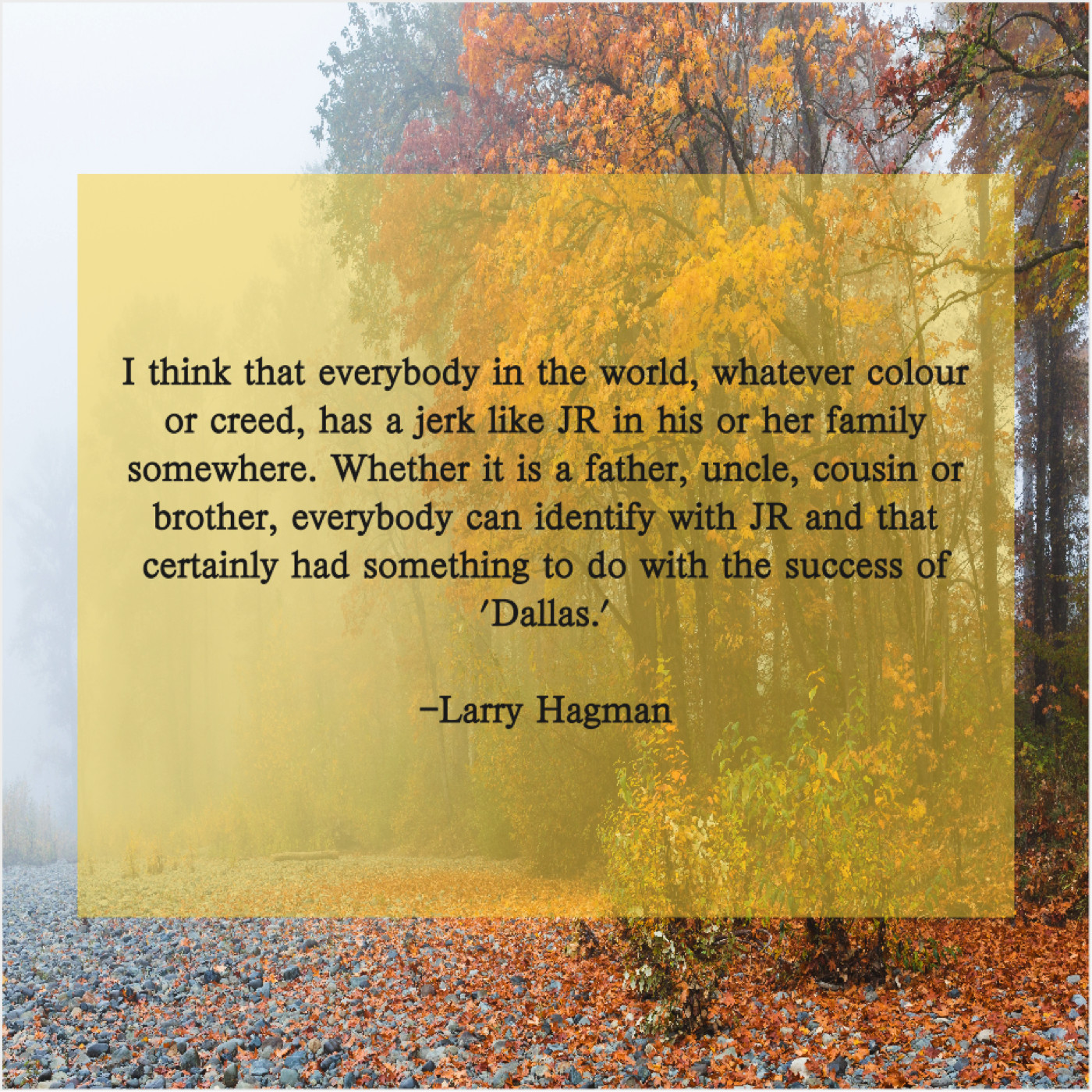 “I think that everybody in the world, whatever colour or creed, has a jerk like JR in his or her family somewhere. Whether it is a father, uncle, cousin or brother, everybody can identify with JR and that certainly had something to do with the success of ‘Dallas.'”