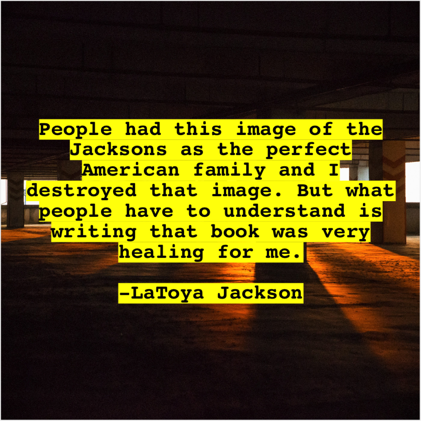 LaToya Jackson LaToya Jackson – People had this image of… February 20, 2019 admin “People had this image of the Jacksons as the perfect American family and I destroyed that image. But what people have to understand is writing that book was very healing for me.”-LaToya Jackson