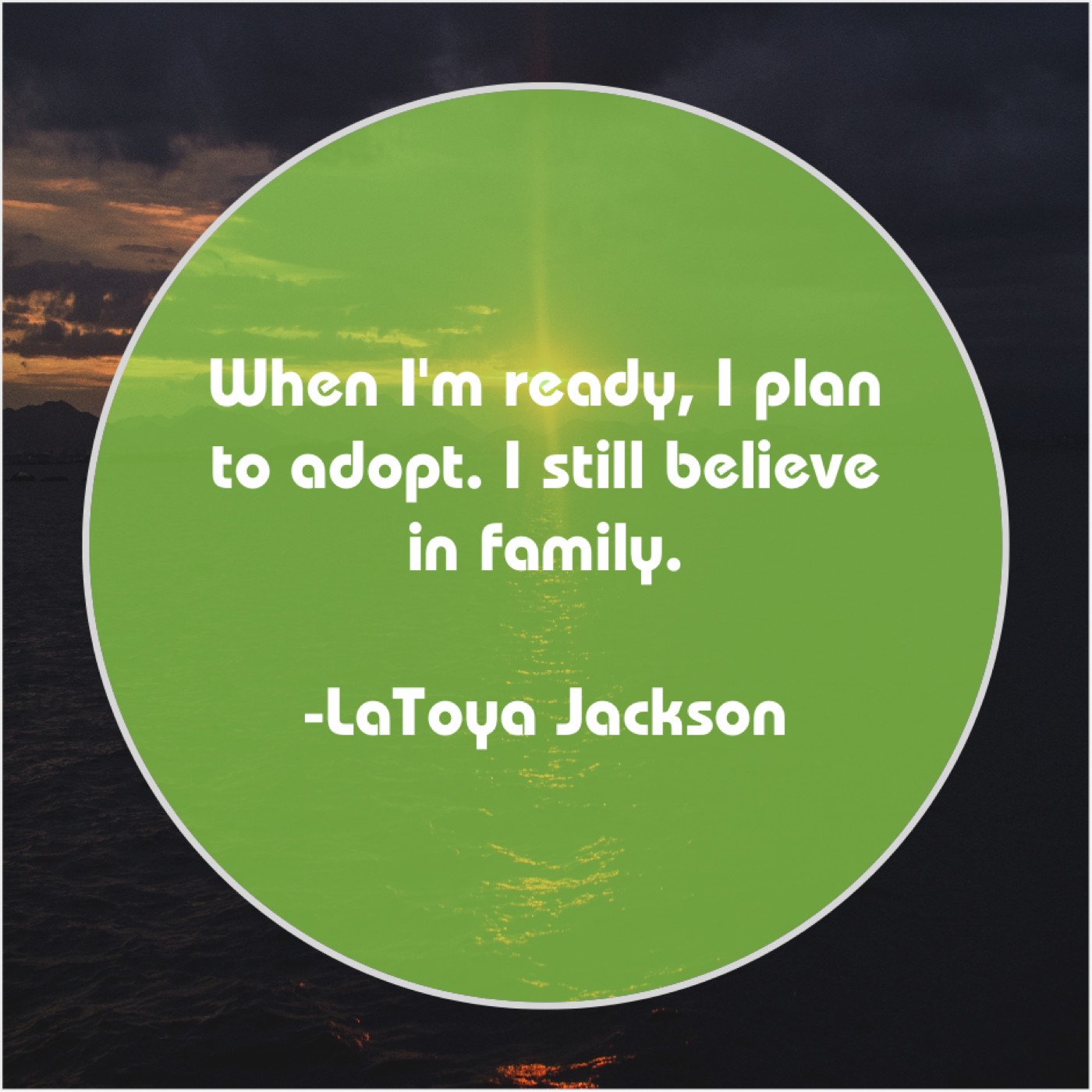 LaToya Jackson LaToya Jackson – When I’m ready, I plan… June 16, 2019 admin “When I’m ready, I plan to adopt. I still believe in family.”-LaToya Jackson