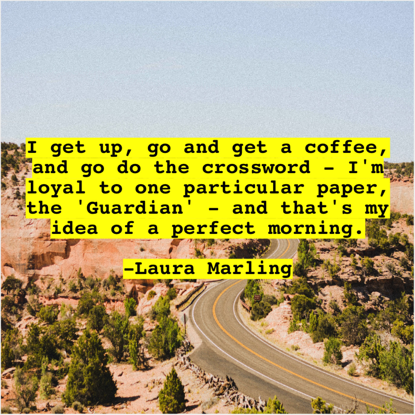 Laura Marling Laura Marling – I get up, go and… September 13, 2019 admin “I get up, go and get a coffee, and go do the crossword – I’m loyal to one particular paper, the ‘Guardian’ – and that’s my idea of a perfect morning.”-Laura Marling