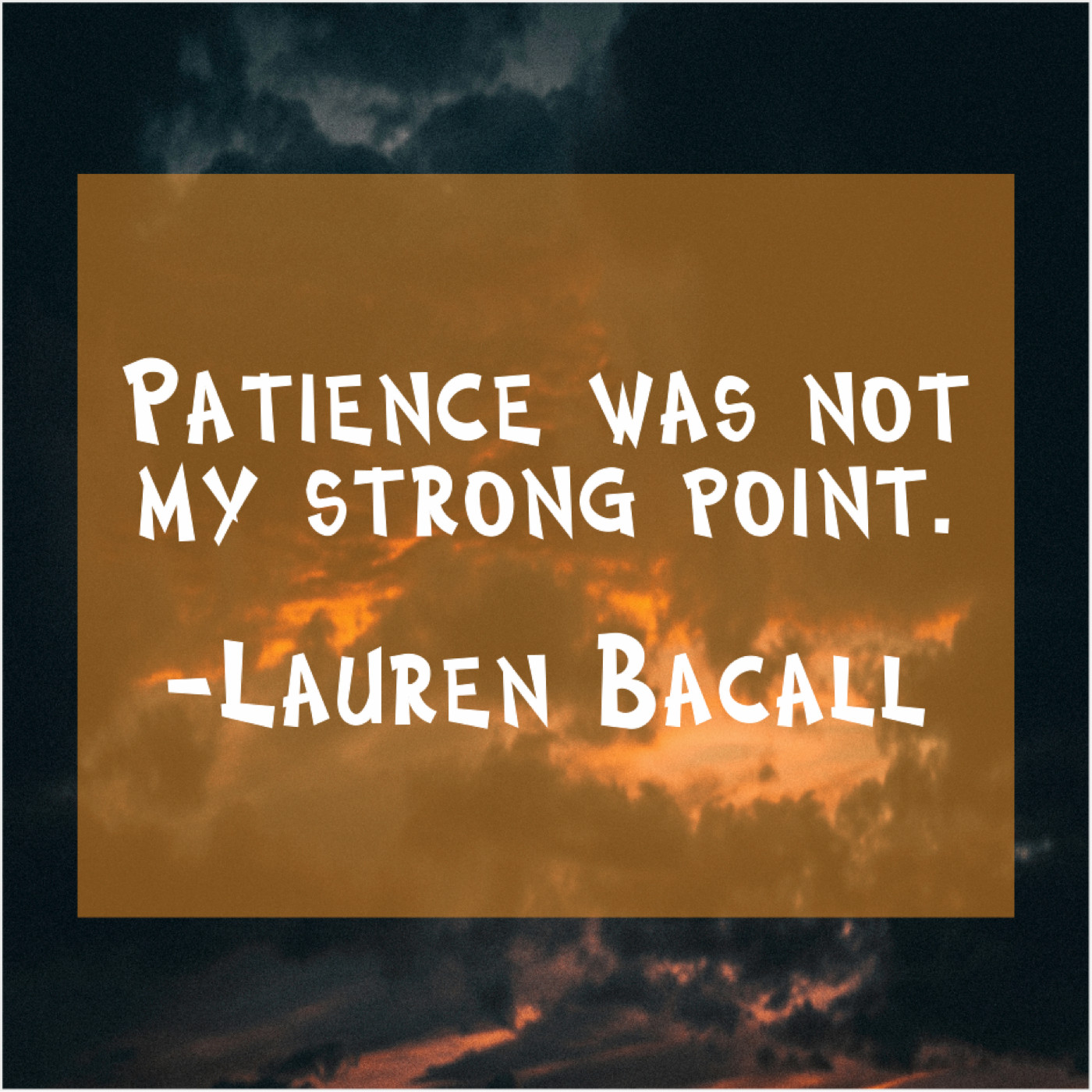 Lauren Bacall Lauren Bacall – Patience was not my strong… February 23, 2019 admin “Patience was not my strong point.”-Lauren Bacall