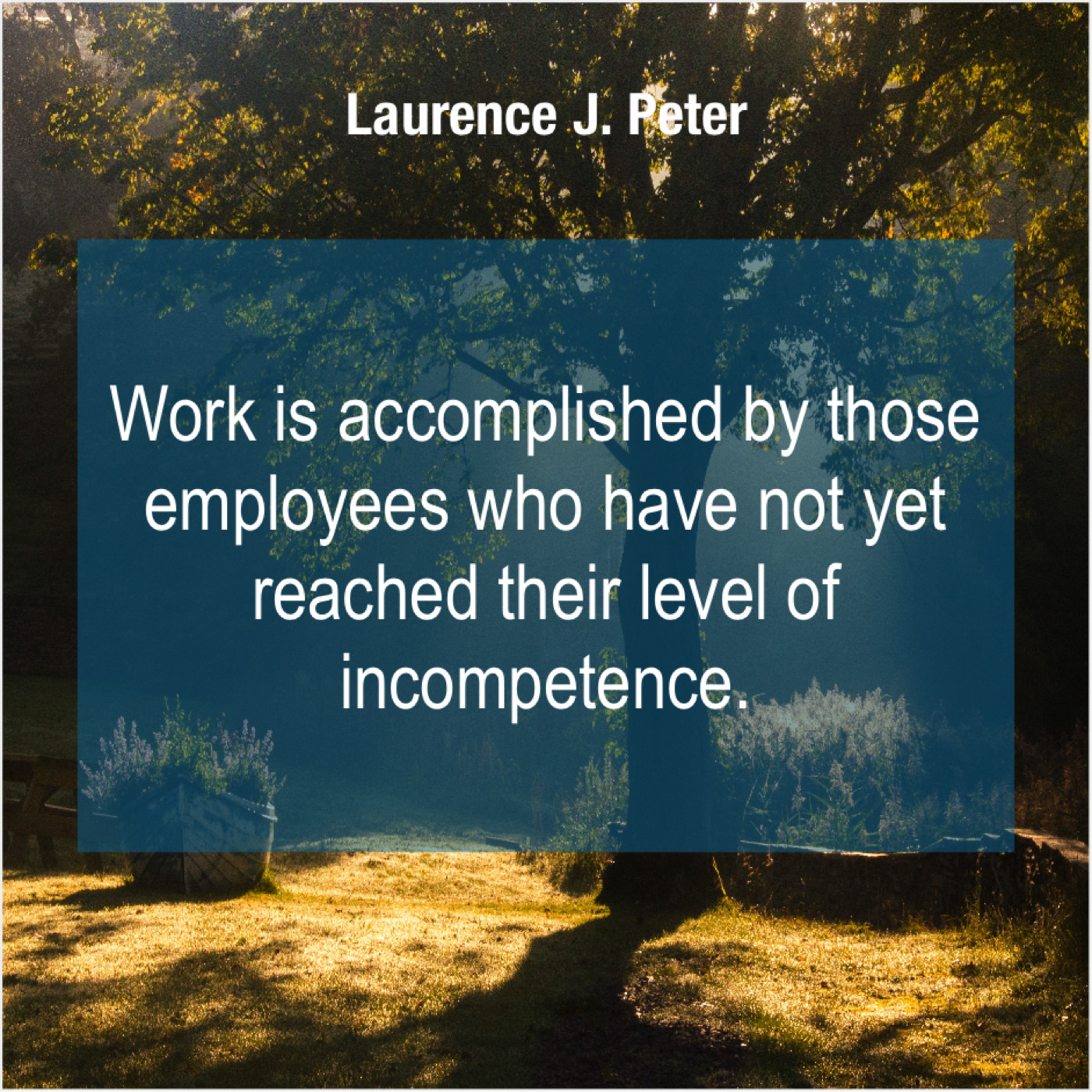 Laurence J. Peter Laurence J. Peter – Work is accomplished by those… July 14, 2019 admin “Work is accomplished by those employees who have not yet reached their level of incompetence.”-Laurence J. Peter