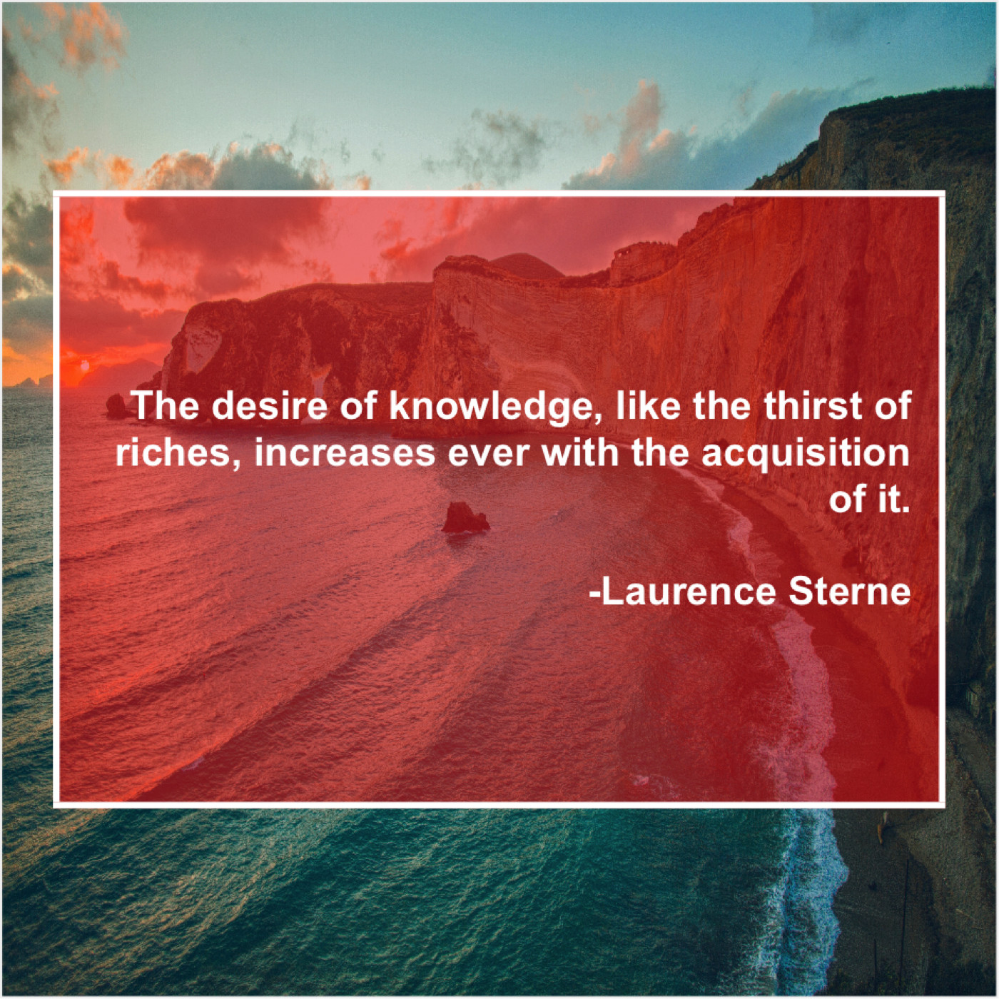 Laurence Sterne Laurence Sterne – The desire of knowledge, like… March 27, 2019 admin “The desire of knowledge, like the thirst of riches, increases ever with the acquisition of it.”-Laurence Sterne