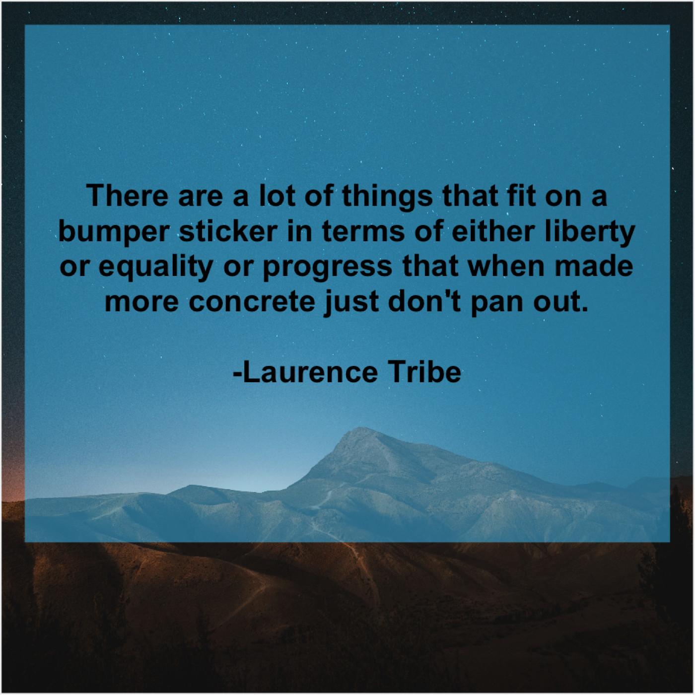 Laurence Tribe Laurence Tribe – There are a lot of… May 31, 2019 admin “There are a lot of things that fit on a bumper sticker in terms of either liberty or equality or progress that when made more concrete just don’t pan out.”-Laurence Tribe