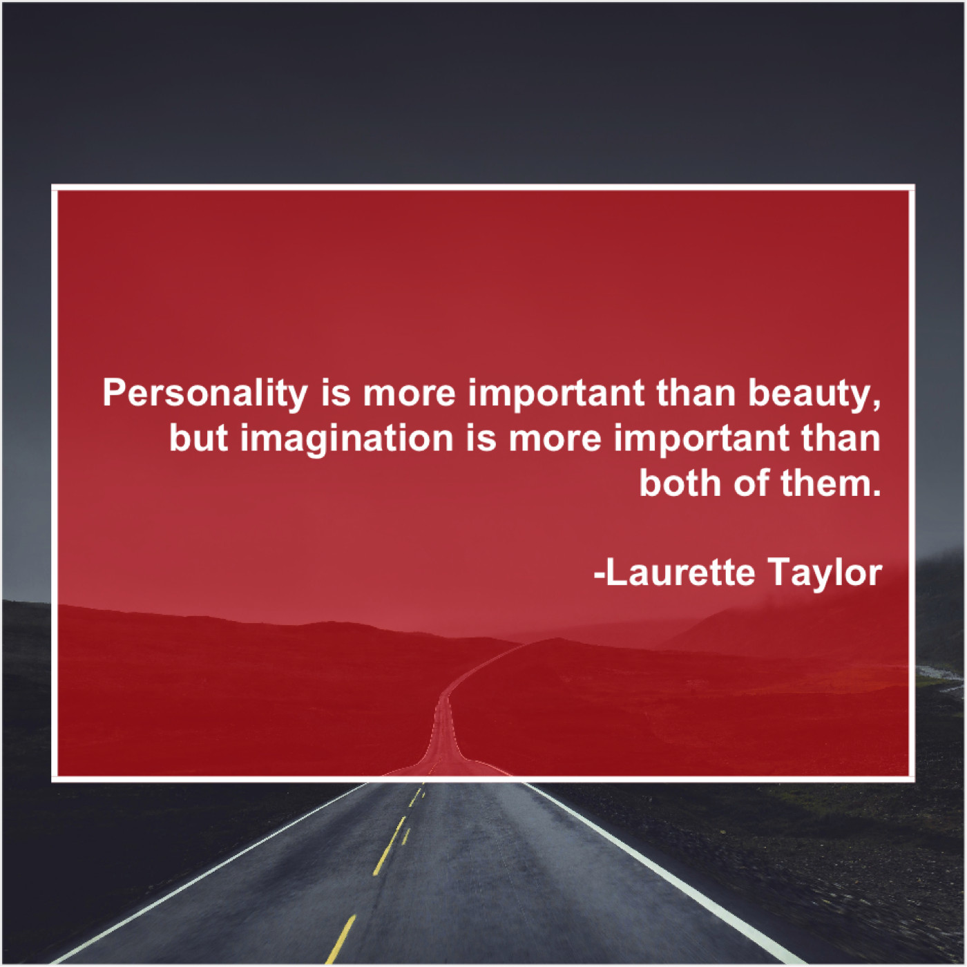 Laurette Taylor Laurette Taylor – Personality is more important than… July 26, 2019 admin “Personality is more important than beauty, but imagination is more important than both of them.”-Laurette Taylor
