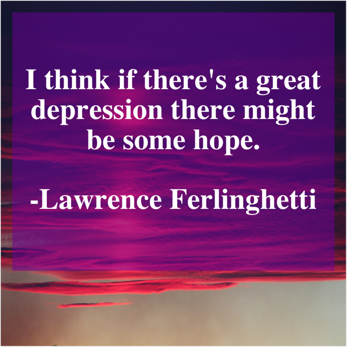 Lawrence Ferlinghetti Lawrence Ferlinghetti – I think if there’s a… May 21, 2019 admin “I think if there’s a great depression there might be some hope.”-Lawrence Ferlinghetti