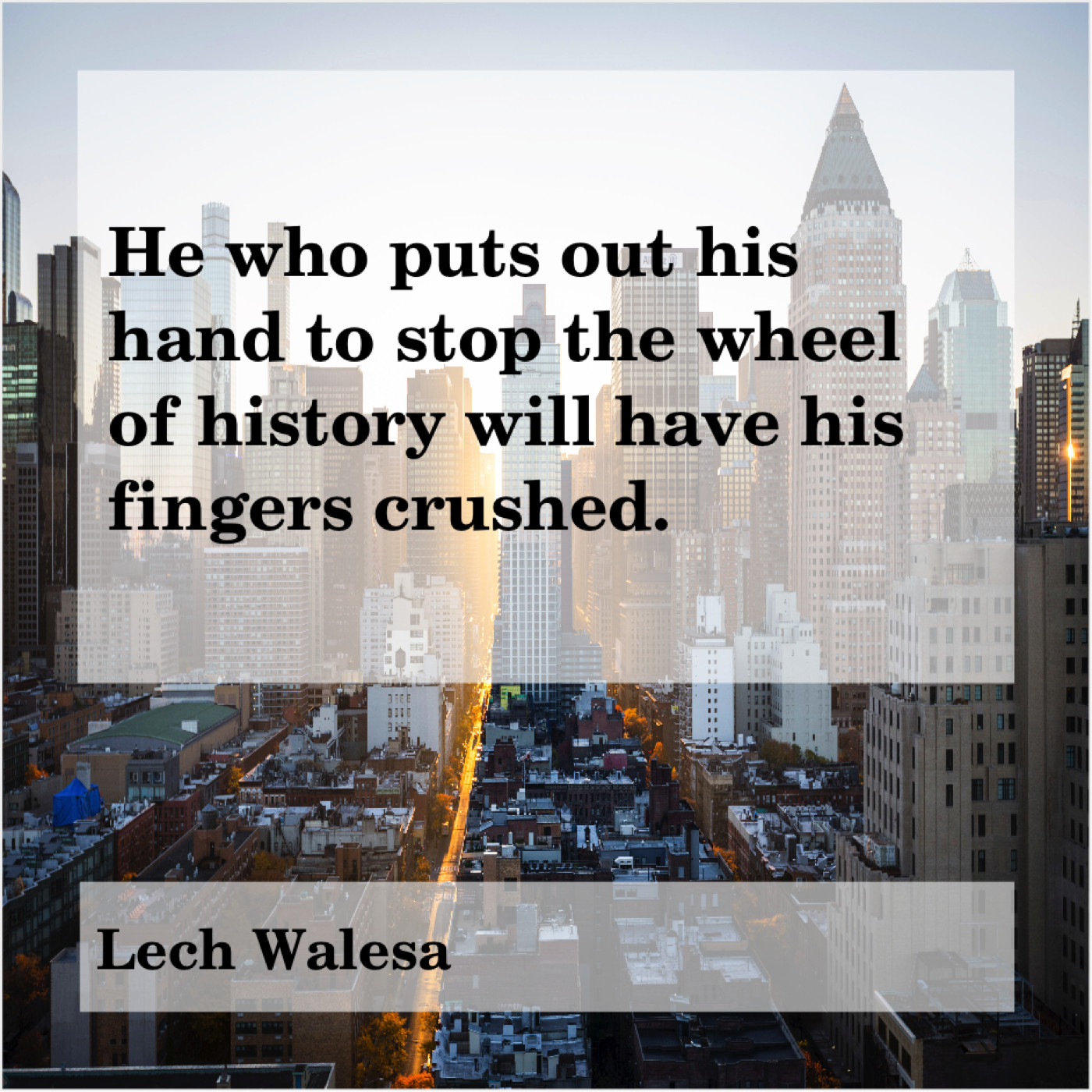 Lech Walesa Lech Walesa – He who puts out his… February 9, 2019 admin “He who puts out his hand to stop the wheel of history will have his fingers crushed.”-Lech Walesa