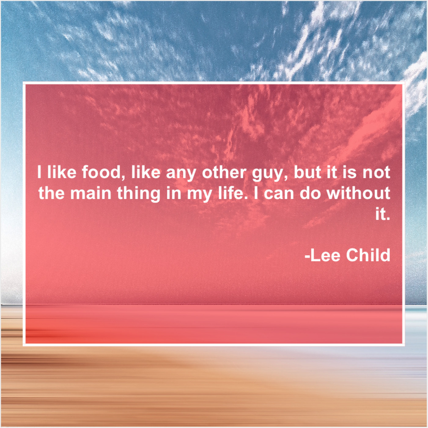 Lee Child Lee Child – I like food, like any… May 8, 2019 admin “I like food, like any other guy, but it is not the main thing in my life. I can do without it.”-Lee Child
