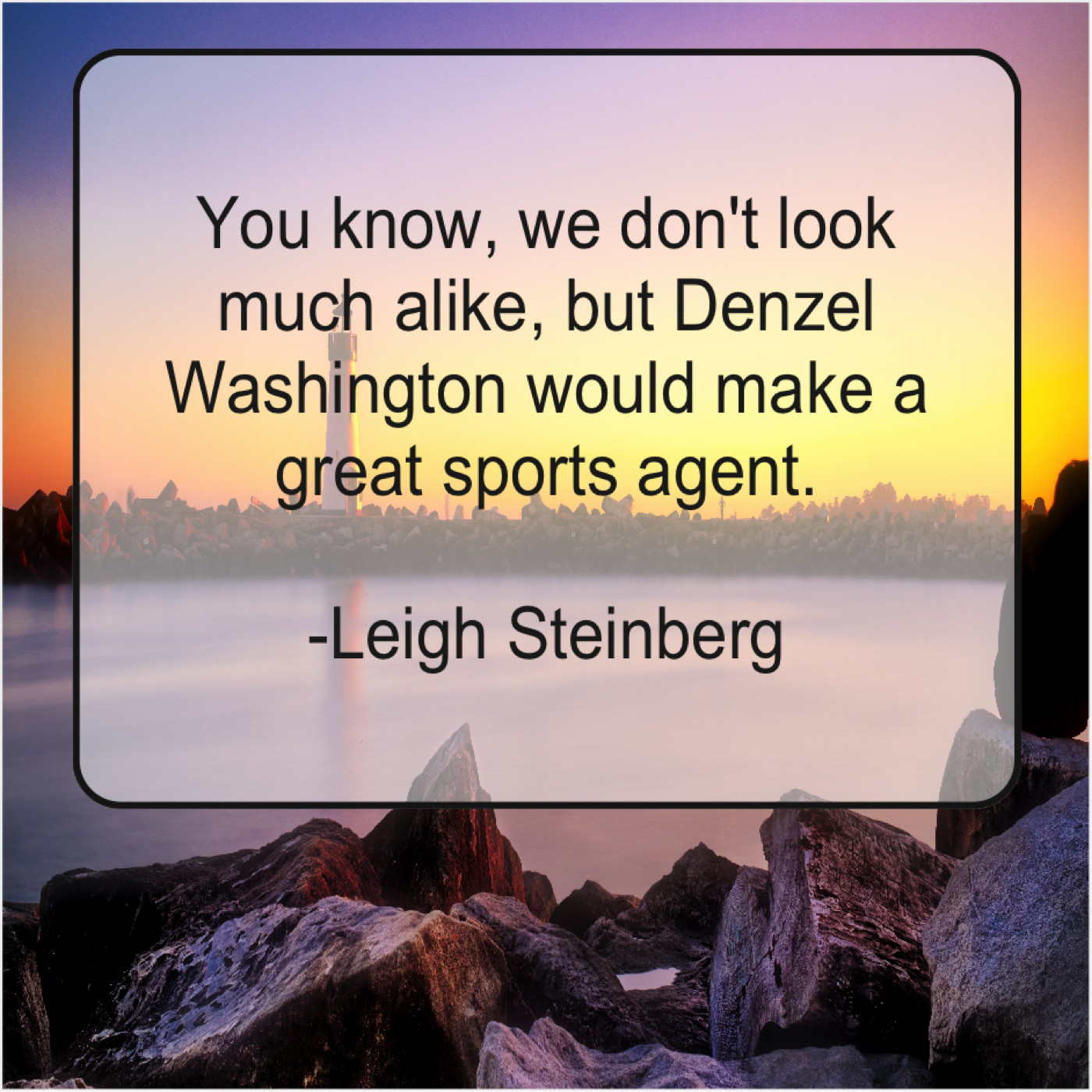 Leigh Steinberg Leigh Steinberg – You know, we don’t look… July 13, 2019 admin “You know, we don’t look much alike, but Denzel Washington would make a great sports agent.”-Leigh Steinberg
