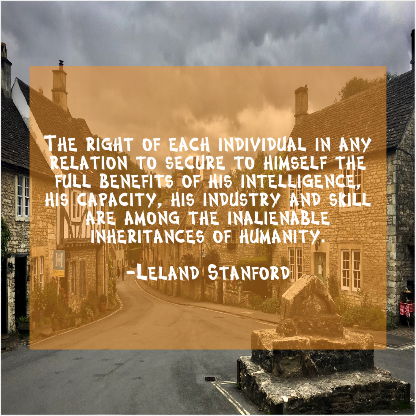 Leland Stanford Leland Stanford – The right of each individual… June 13, 2019 admin “The right of each individual in any relation to secure to himself the full benefits of his intelligence, his capacity, his industry and skill are among the inalienable inheritances of humanity.”-Leland Stanford