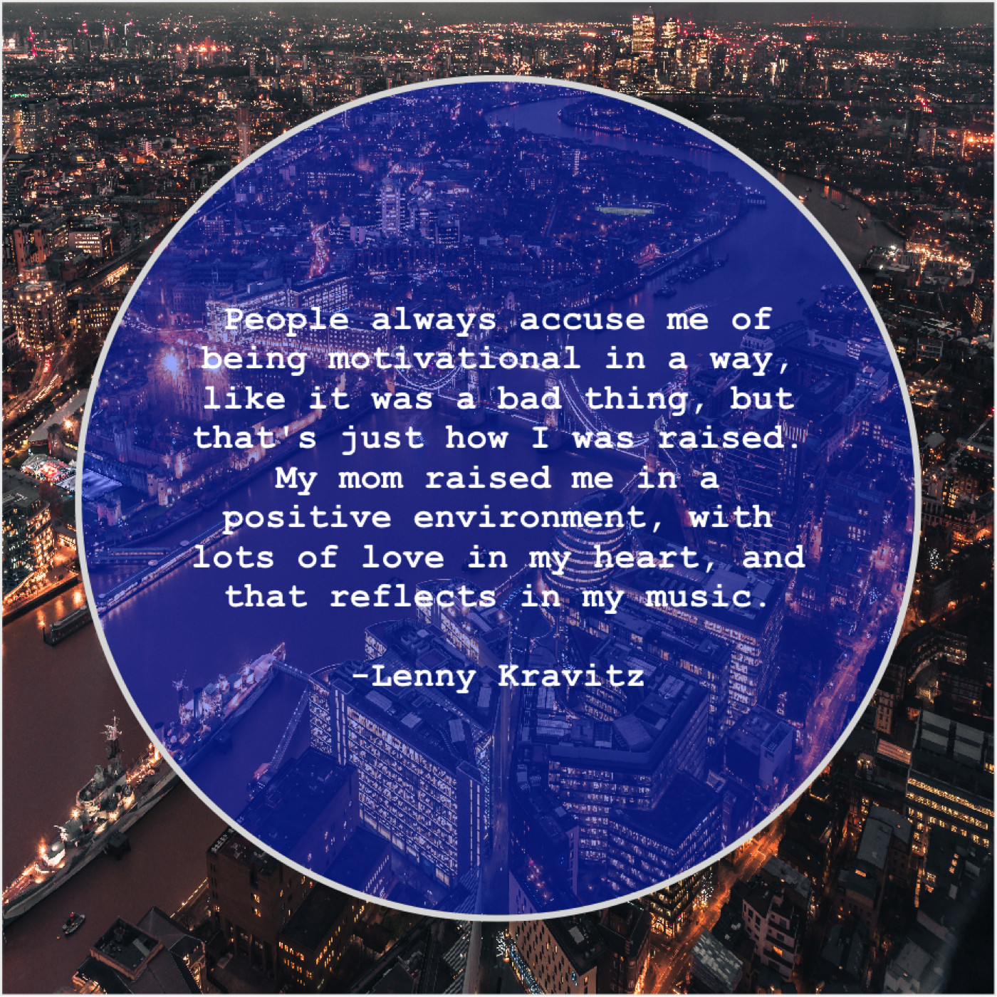 Lenny Kravitz Lenny Kravitz – People always accuse me of… February 10, 2019 admin “People always accuse me of being motivational in a way, like it was a bad thing, but that’s just how I was raised. My mom raised me in a positive environment, with lots of love in my heart, and that reflects in my music.”-Lenny Kravitz