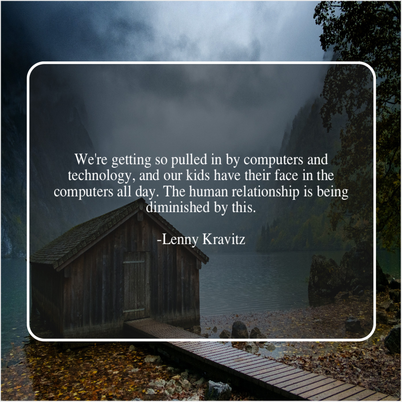 Lenny Kravitz Lenny Kravitz – We’re getting so pulled in… September 7, 2019 admin “We’re getting so pulled in by computers and technology, and our kids have their face in the computers all day. The human relationship is being diminished by this.”-Lenny Kravitz