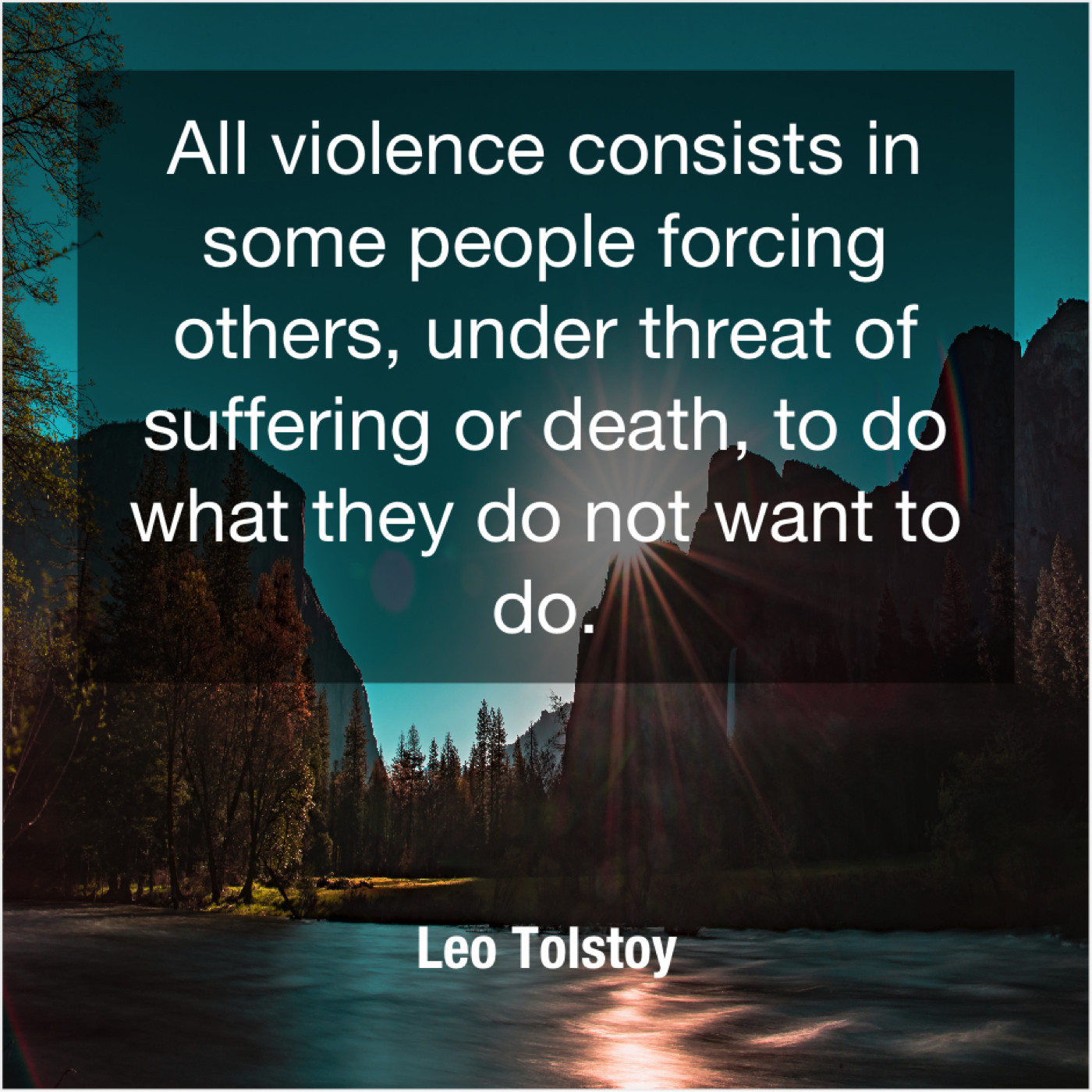 Leo Tolstoy Leo Tolstoy – All violence consists in some… October 6, 2019 admin “All violence consists in some people forcing others, under threat of suffering or death, to do what they do not want to do.”-Leo Tolstoy