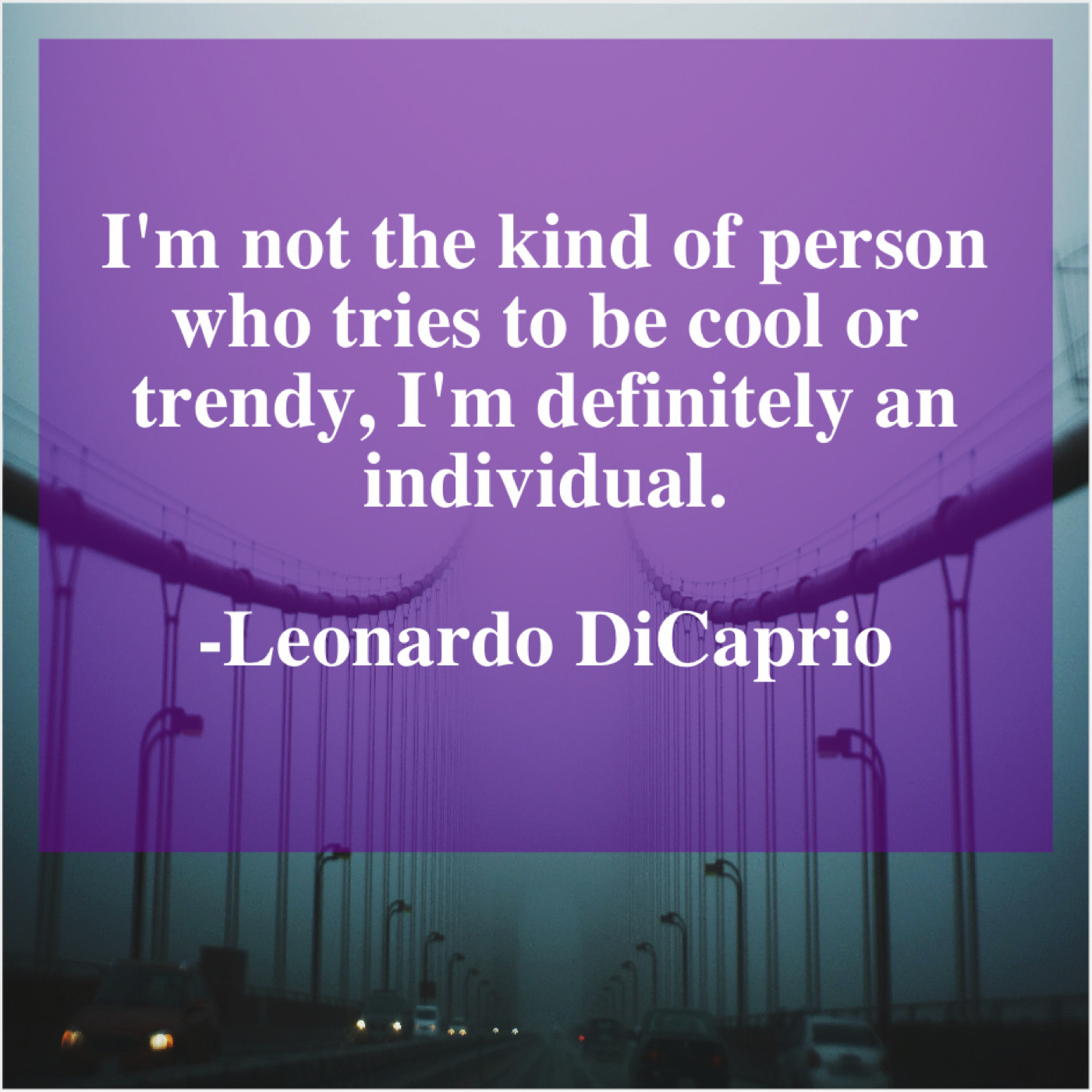 Leonardo DiCaprio Leonardo DiCaprio – I’m not the kind of… May 23, 2019 admin “I’m not the kind of person who tries to be cool or trendy, I’m definitely an individual.”-Leonardo DiCaprio