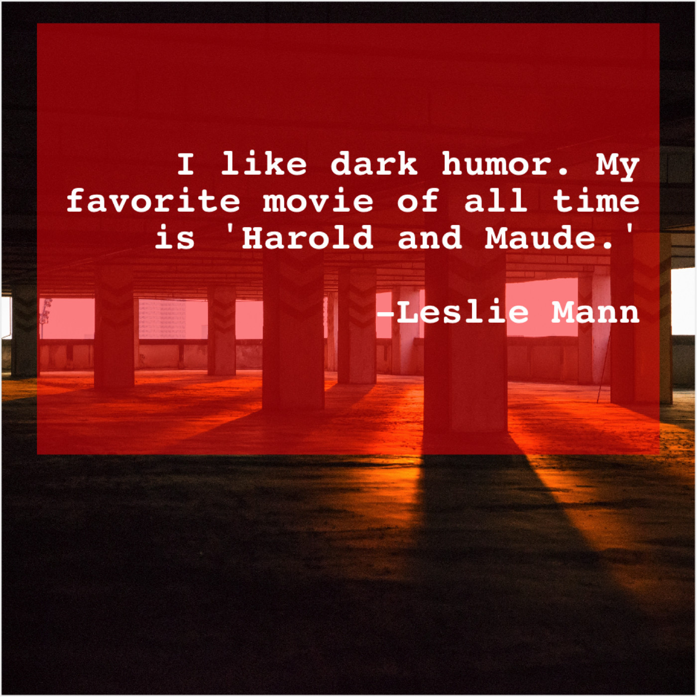 Leslie Mann Leslie Mann – I like dark humor. My… February 15, 2019 admin “I like dark humor. My favorite movie of all time is ‘Harold and Maude.'”-Leslie Mann