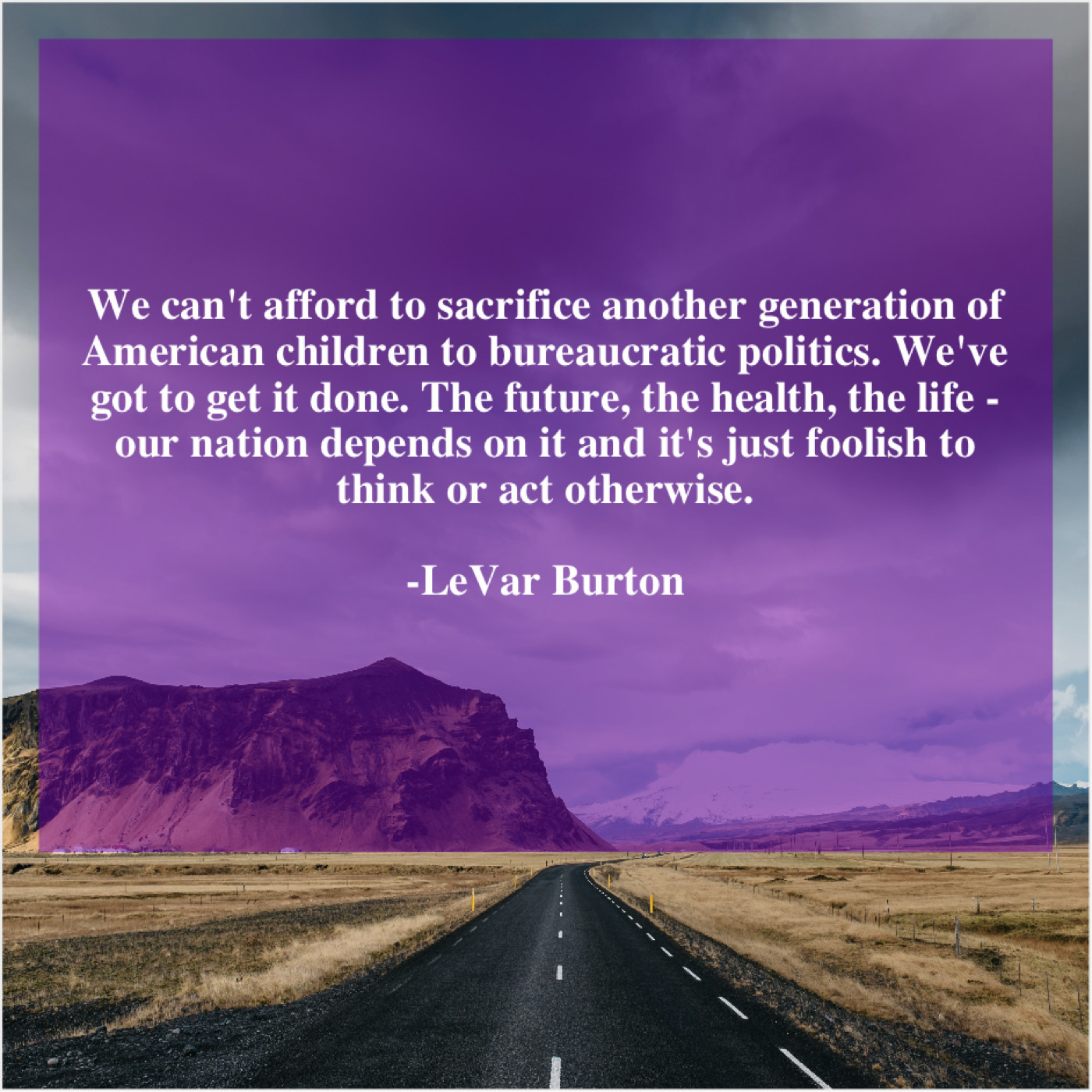LeVar Burton LeVar Burton – We can’t afford to sacrifice… August 3, 2019 admin “We can’t afford to sacrifice another generation of American children to bureaucratic politics. We’ve got to get it done. The future, the health, the life – our nation depends on it and it’s just foolish to think or act otherwise.”-LeVar Burton