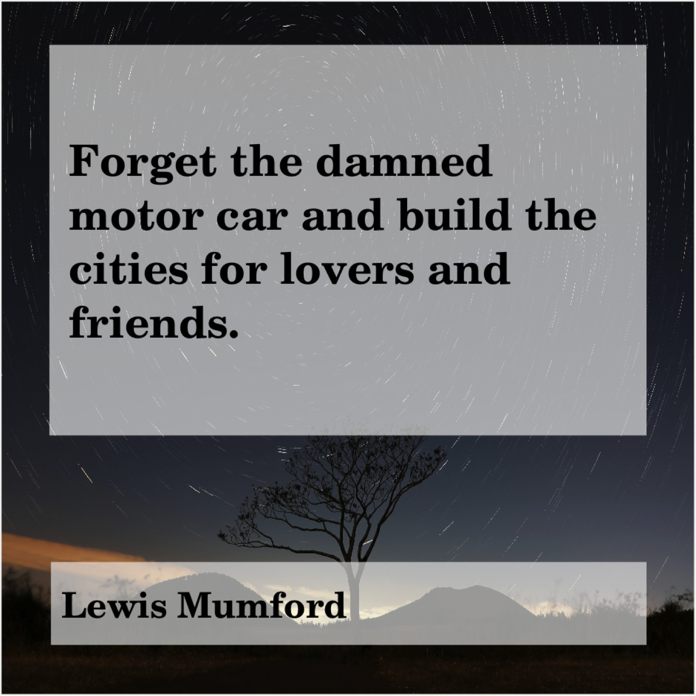 Lewis Mumford Lewis Mumford – Forget the damned motor car… January 15, 2019 admin “Forget the damned motor car and build the cities for lovers and friends.”-Lewis Mumford